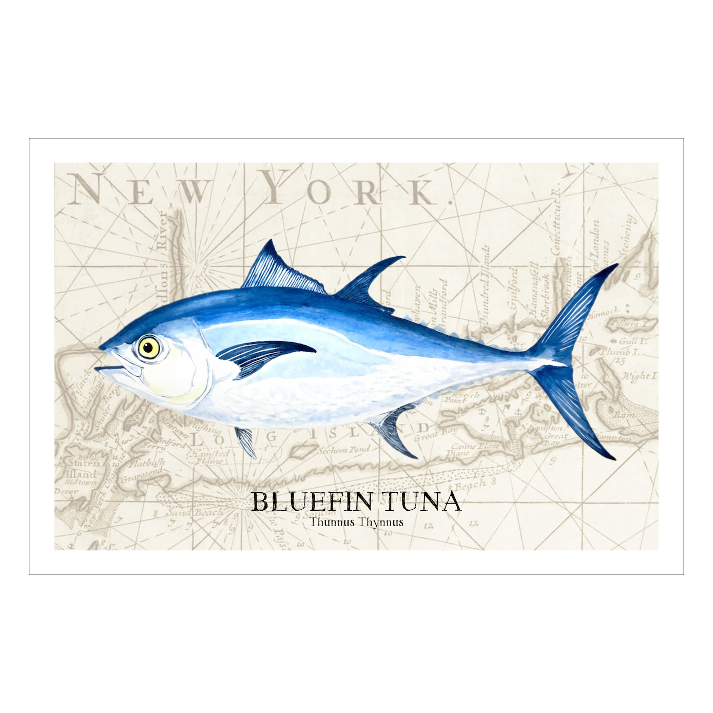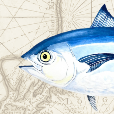Artwork: Bluefin Tuna on Antique Long Island Map