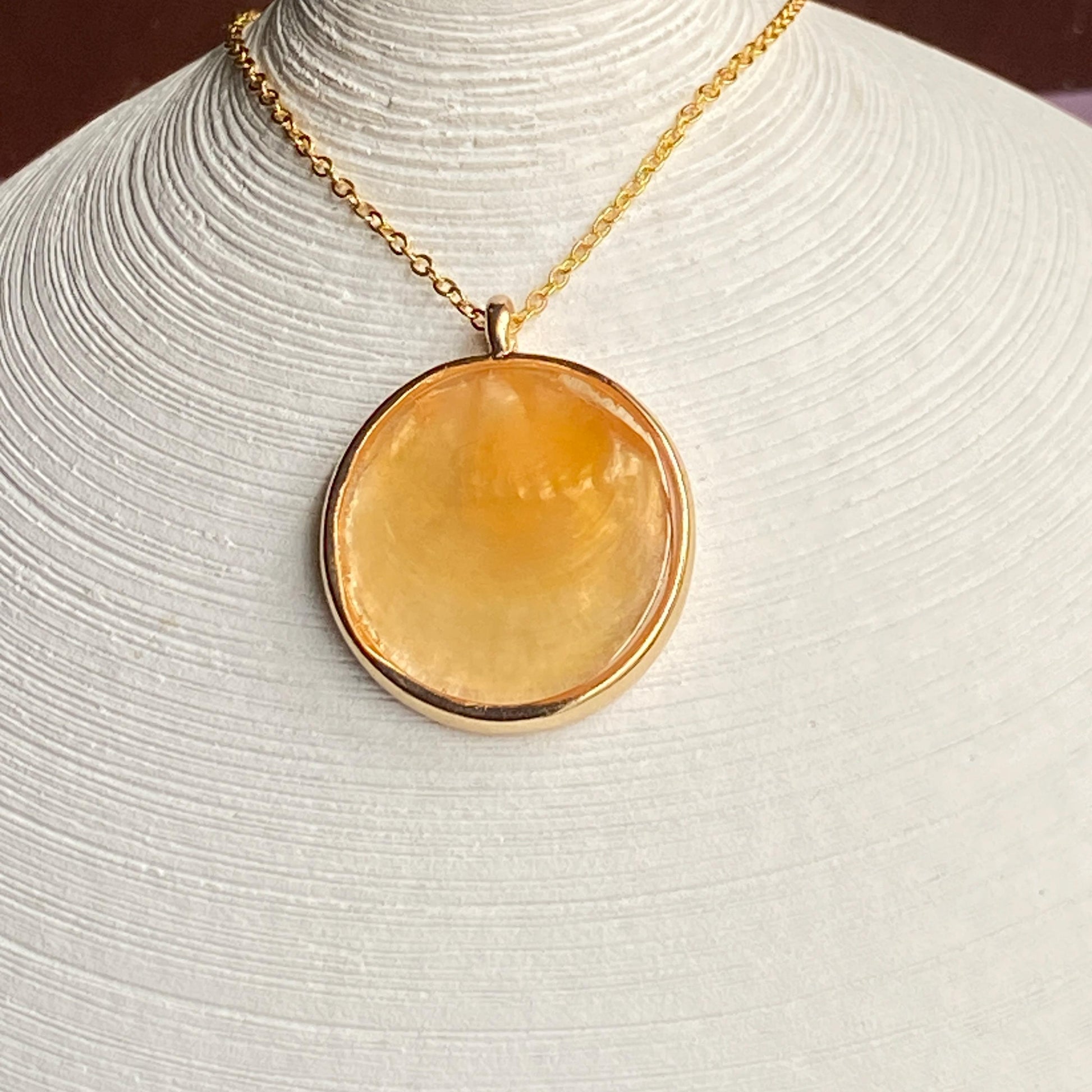 Beautiful genuine Capiz, also known as Jingle Shells, collected off the beautiful beaches of the Gulf Coast of Florida. We shape these to fit inside a gold plated bezel and encase it in a thick layer of resin. Would make an amazing and thoughtful gift for anyone who shares our fascination with the ocean and its creatures.