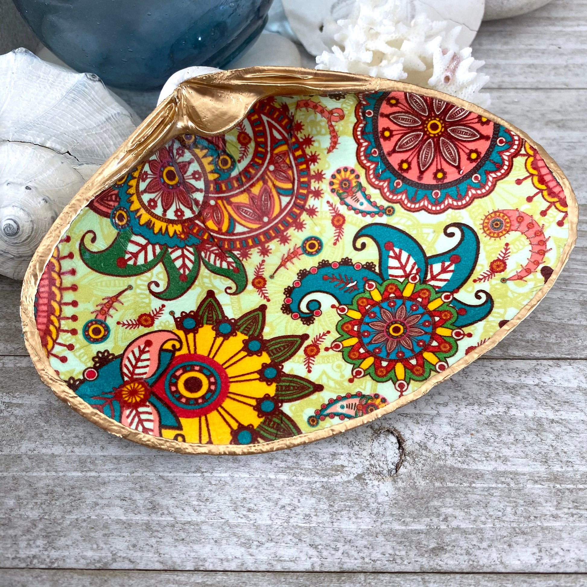 Decoupage Clam Shell Trinket Dish – Paisley Design