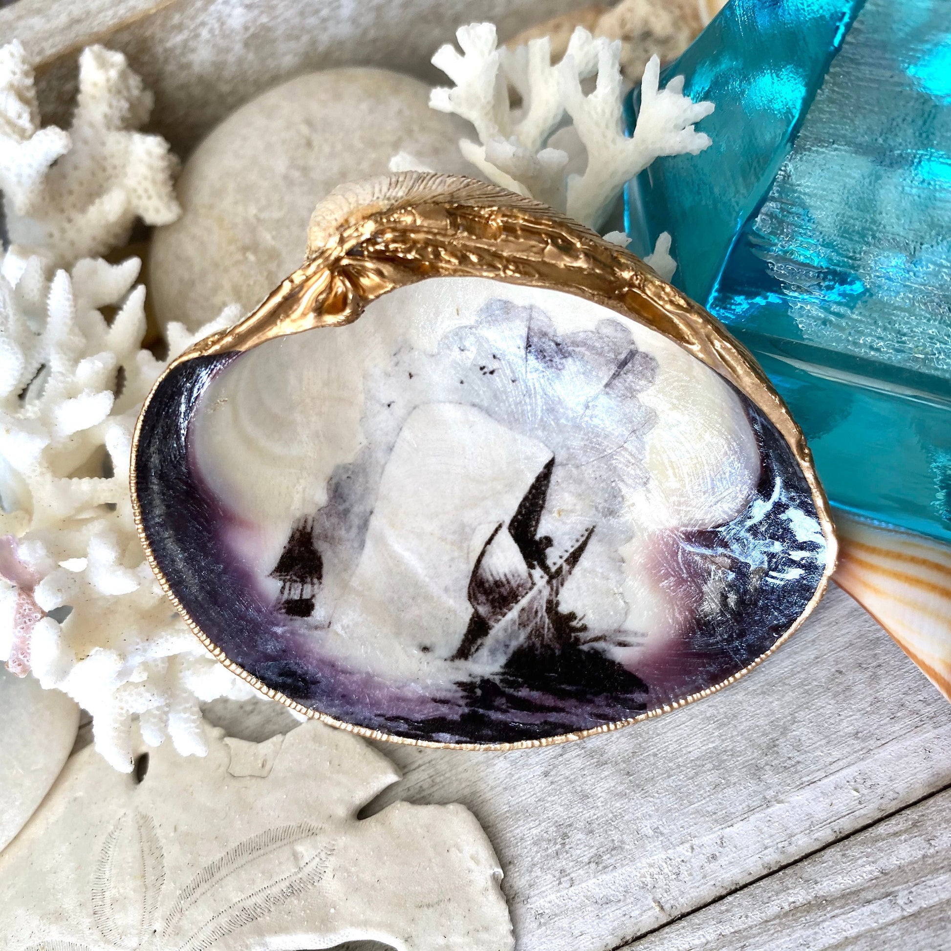 Decoupage Whale Clam Shell Ring Dish – Moby Dick-Inspired Nautical Jewelry Holder