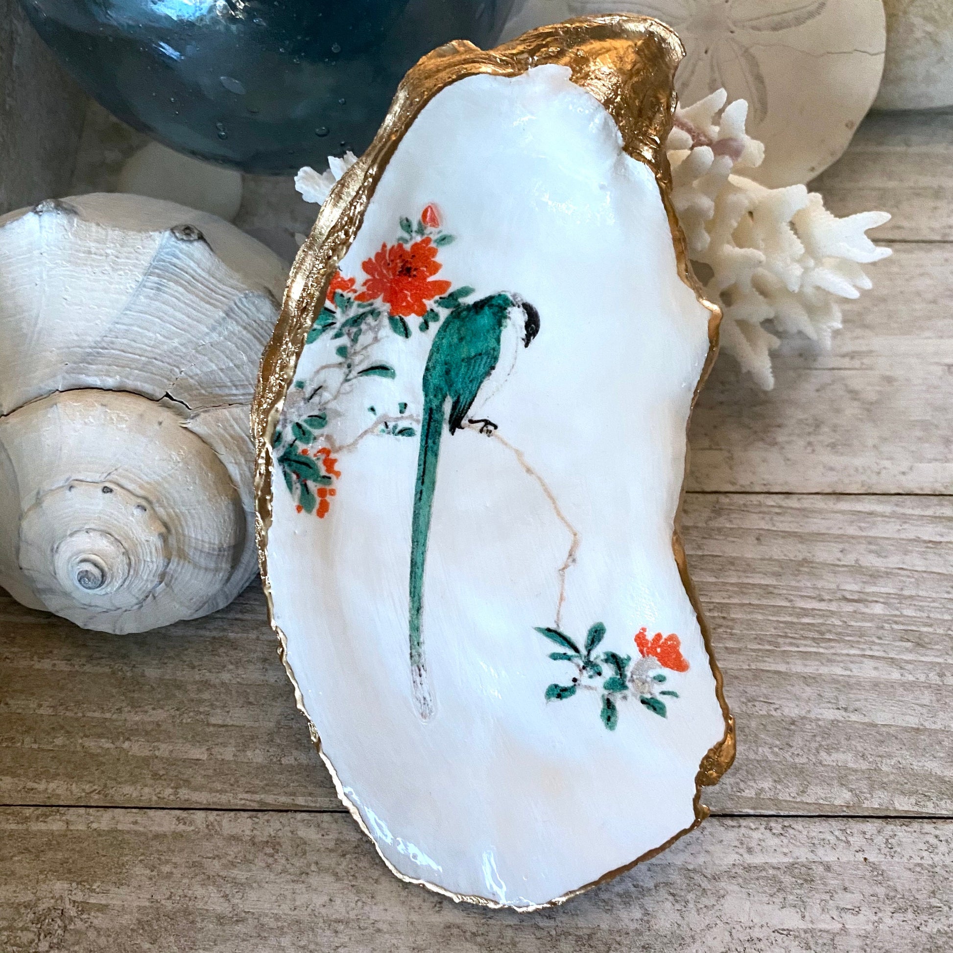 Decoupage Oyster Shell Ring Dish – Bird & Floral Design