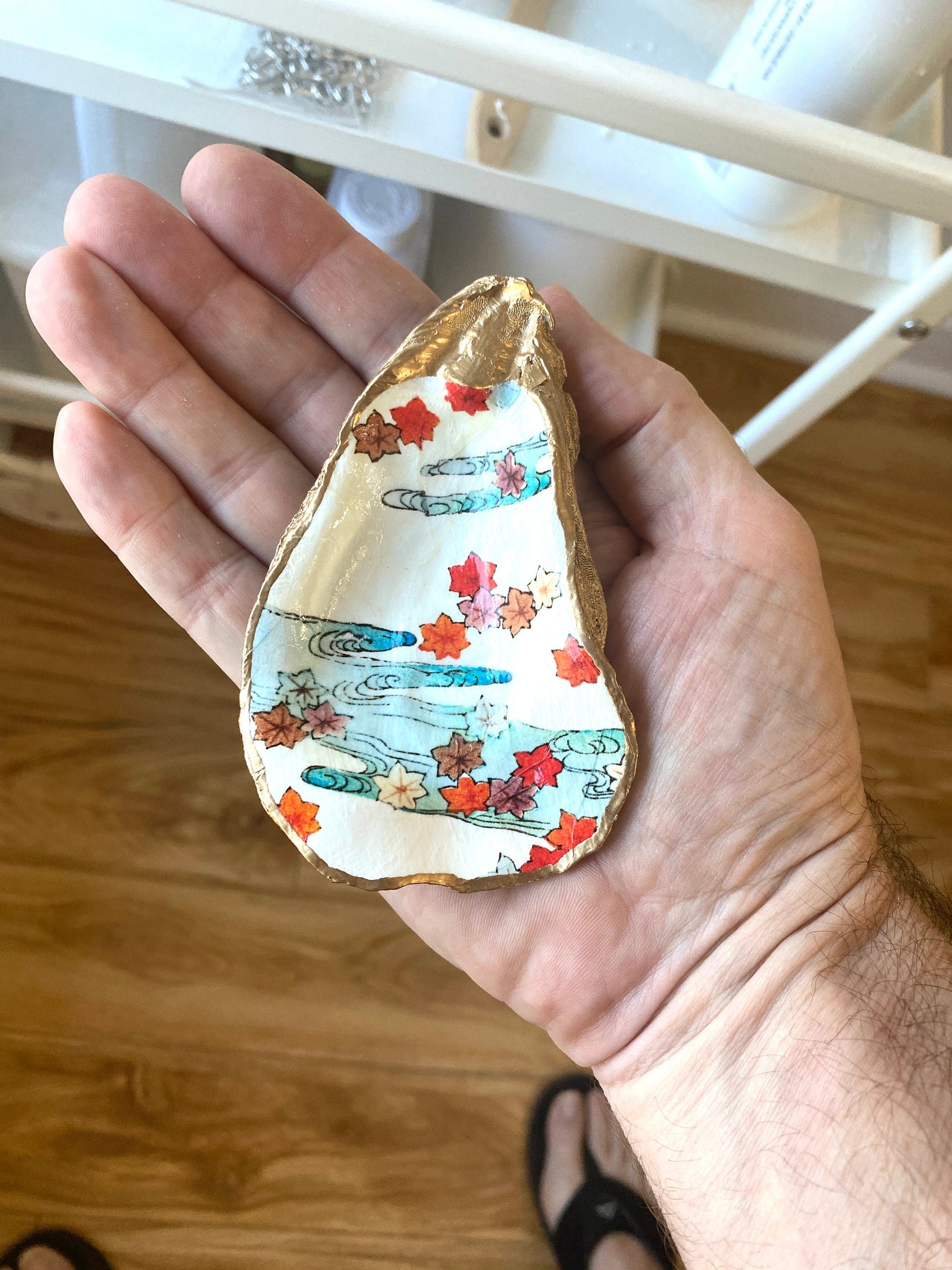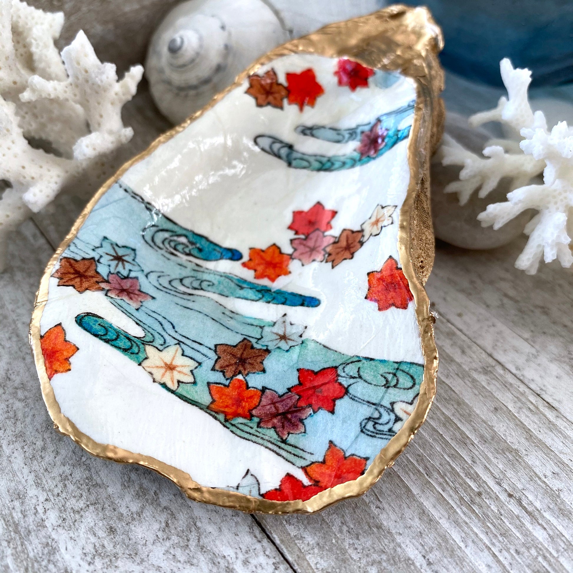 Decoupage Oyster Shell Ring Dish – Autumn Leaves Design, Hostess Gift