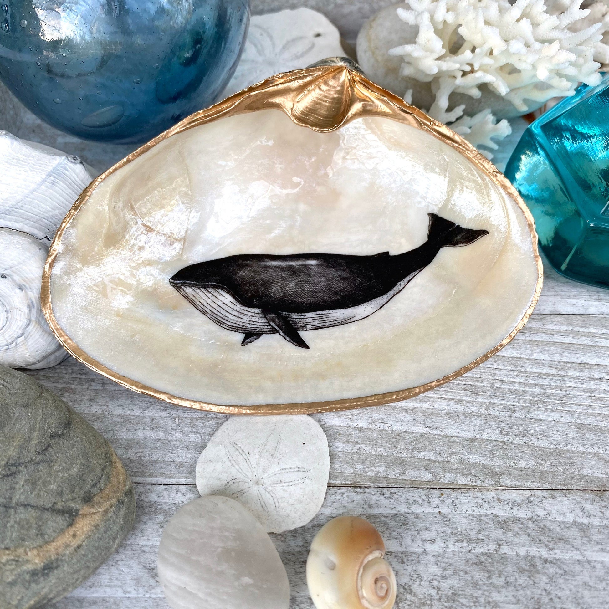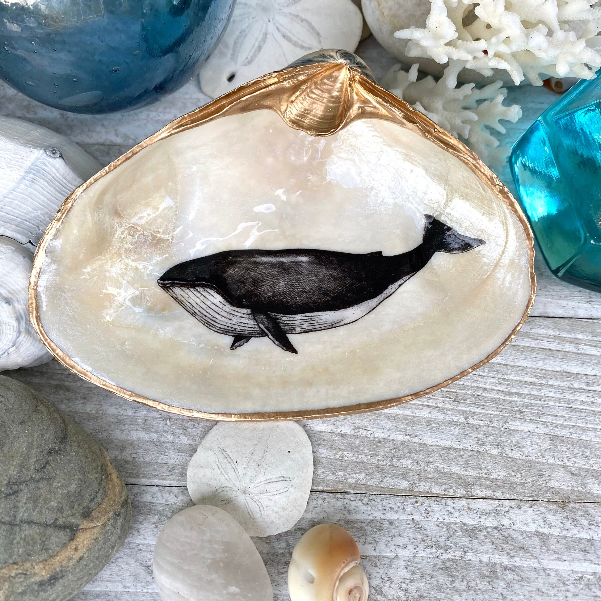 These decoupaged shells are hand-crafted with a fine level of detail. Images are carefully set on a base of white or pearl paint and sealed with multiple layers of lacquer to give a refined porcelain feel and look to them. A delicate edging of liquid gold leaf gives the finishing touch. Shell backs are left in their beautiful and natural state. These shells are thoroughly cleaned with soap and water - no harsh chemicals used.