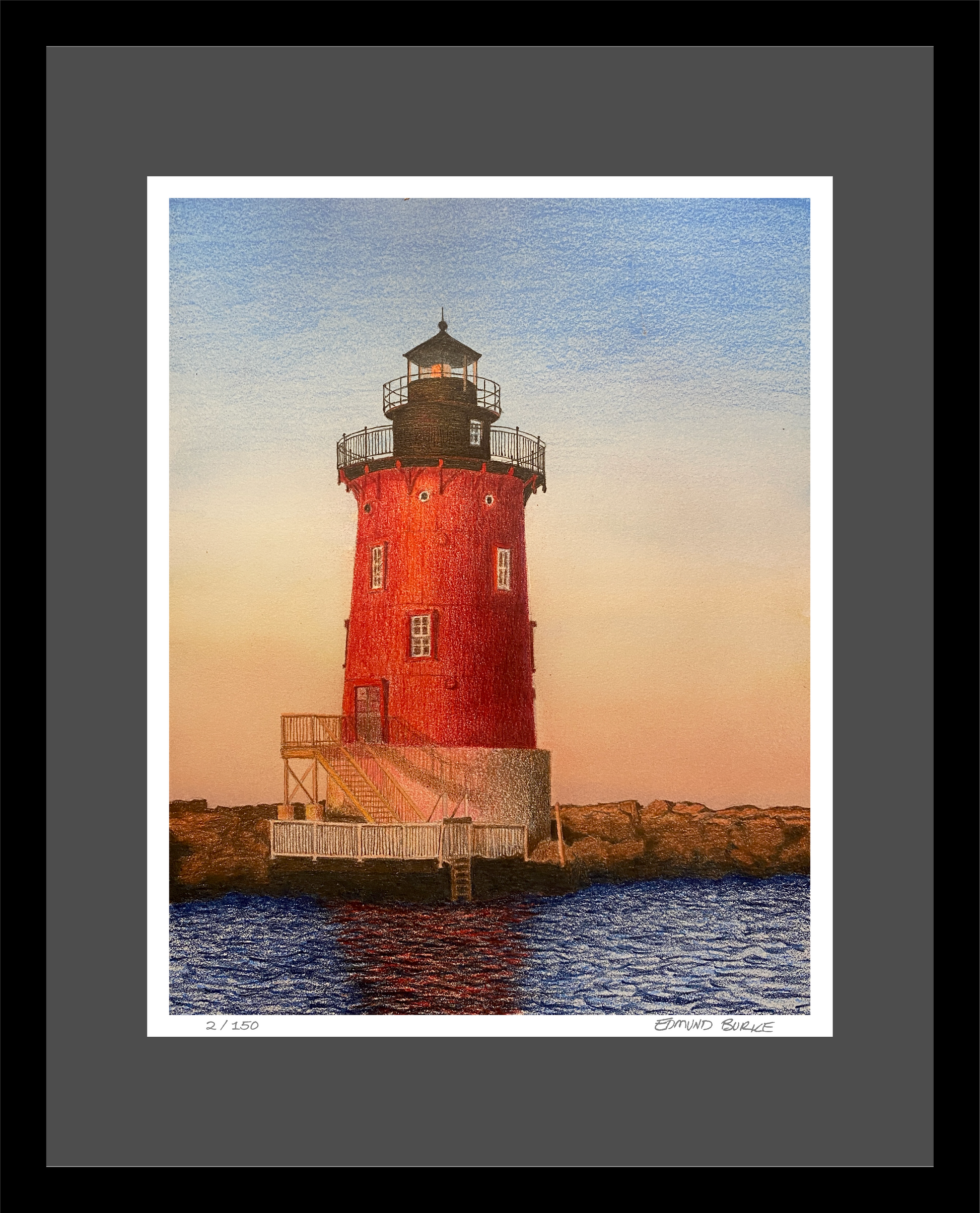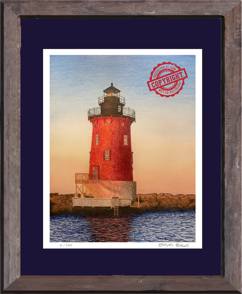 Limited edition giclee lighthouse art print from original artwork hand-drawn and hand-colored.