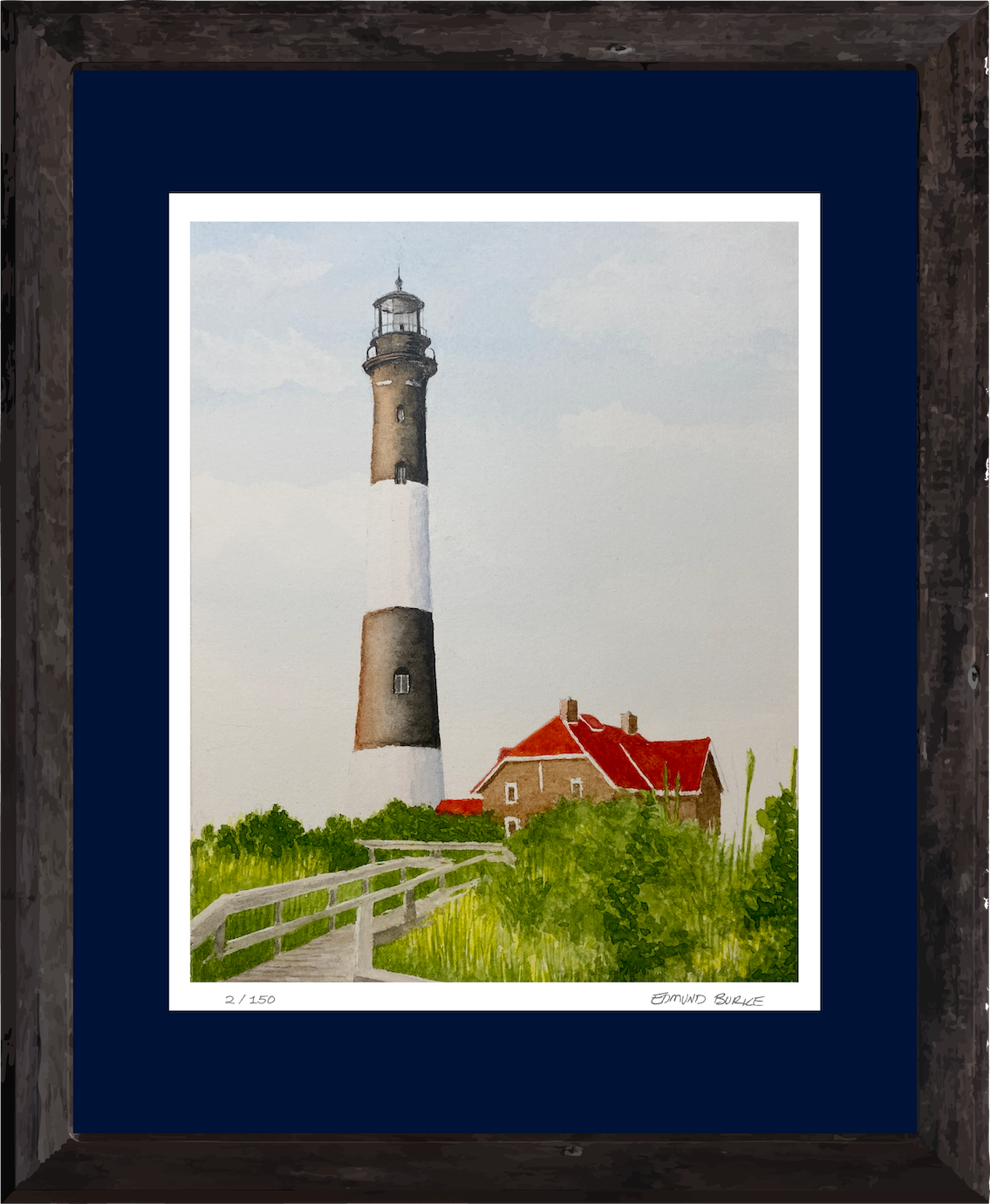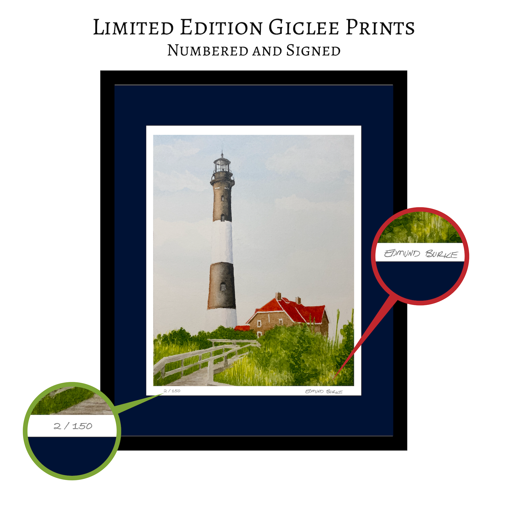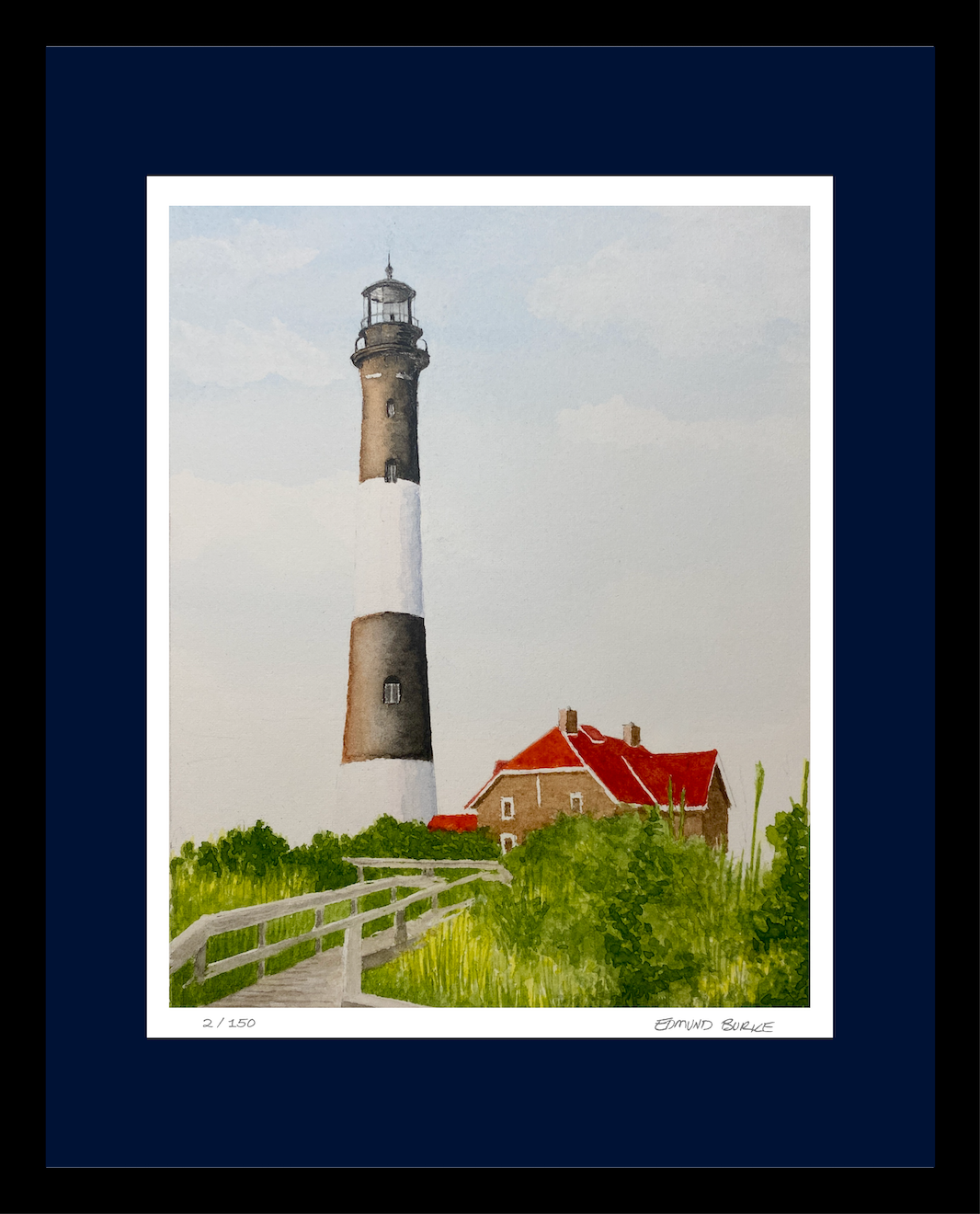 Limited edition giclee lighthouse art print from original watercolor painting.