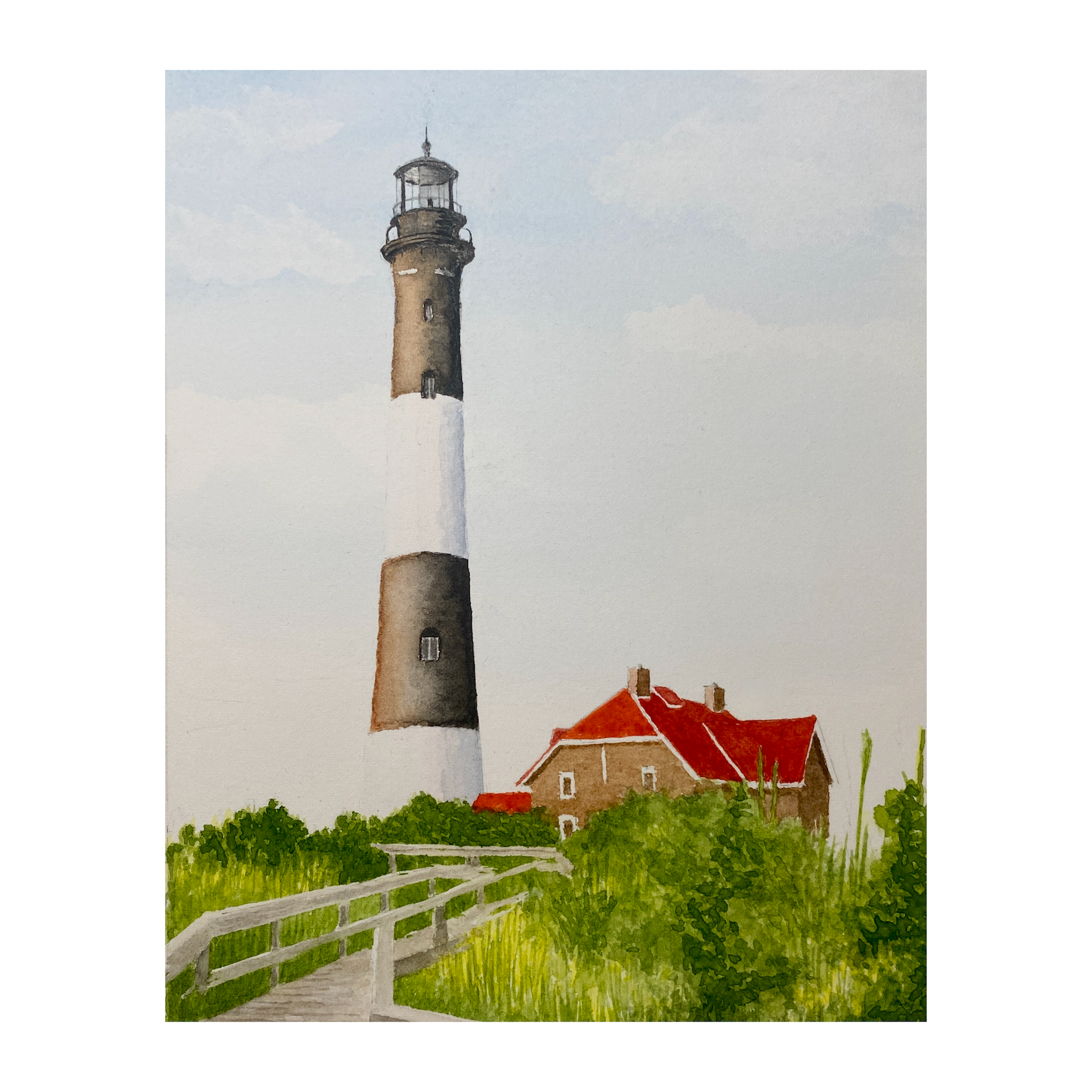 This piece was painted with professional watercolor paints on archival-quality paper, then reproduced as a fine art print to preserve every sunlit detail. Whether you’ve visited Fire Island or simply dream of seaside getaways, this print will transport you to a serene, summer shoreline.