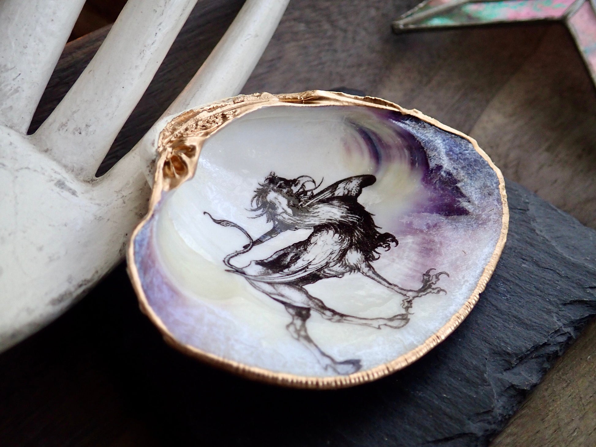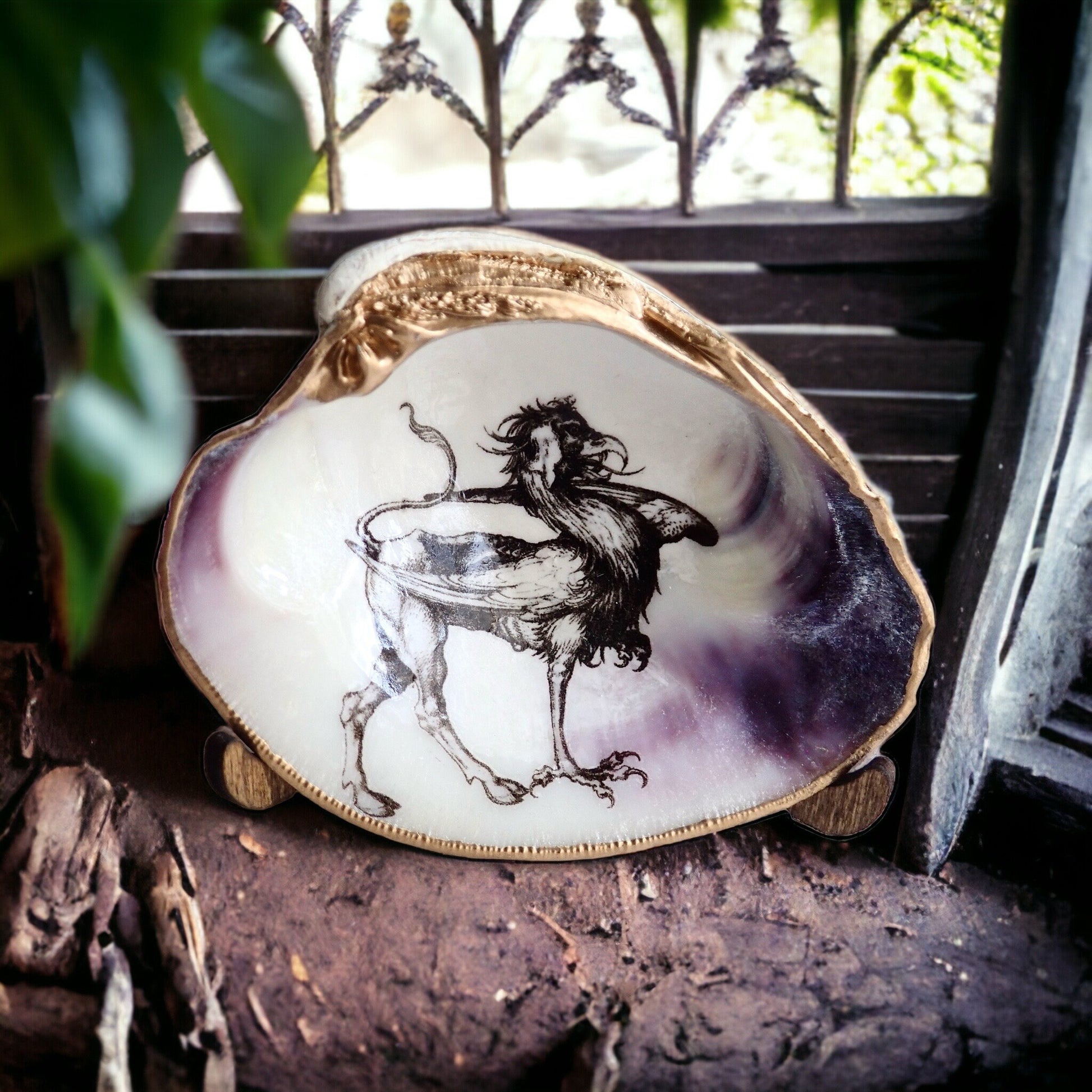 Decoupage Clam Shell Trinket Dish Mythical Griffin Art