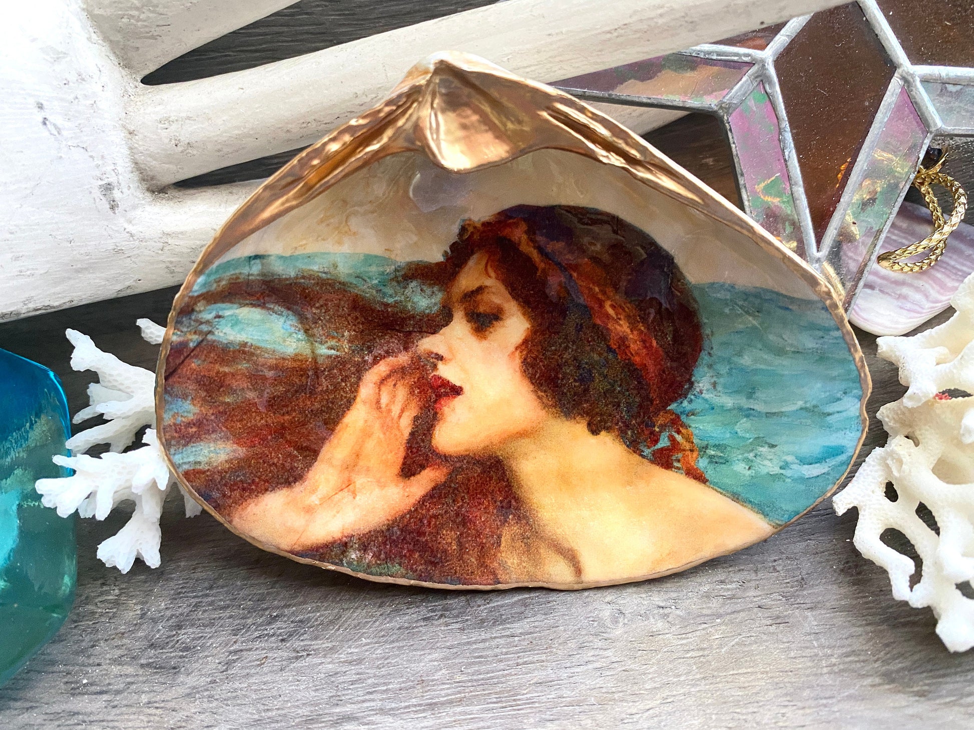 Mermaid Art Decoupage Clam Shell