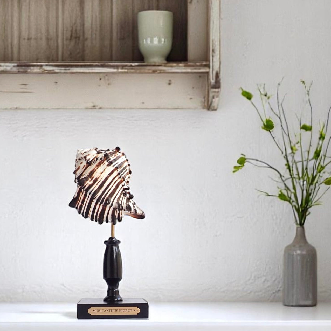 Mounted Shell Sculpture, Sea Shell on Stand, Tropical Shell Display, Elegant Coastal Decor, Beach House Gift, Nautical Marine Home Accent
