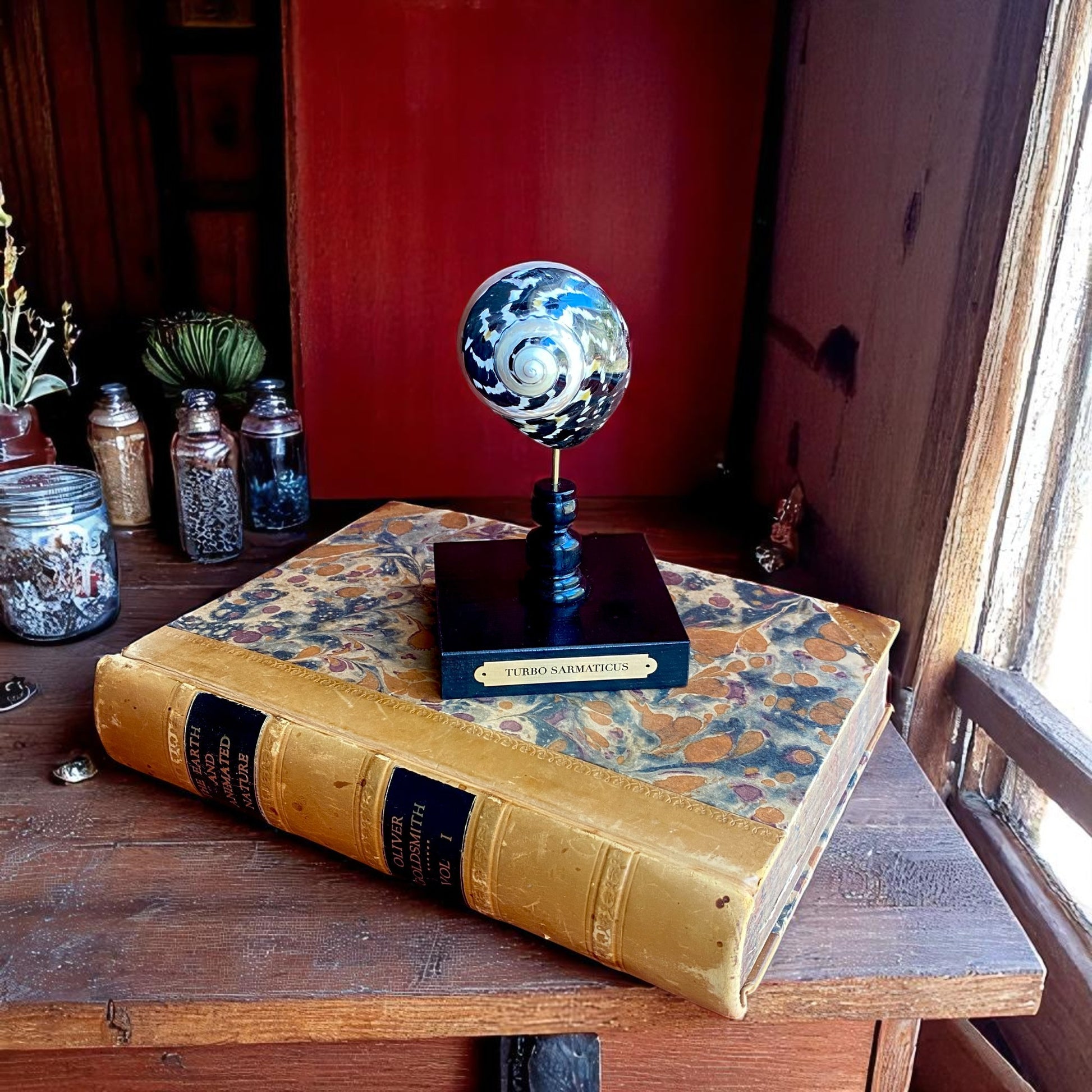 Mounted Turbo Shell Sculpture, Sea Shell on Handmade Stand, Tropical Shell Display, Chic Coastal Decor, Beach House Gift, Marine Home Accent