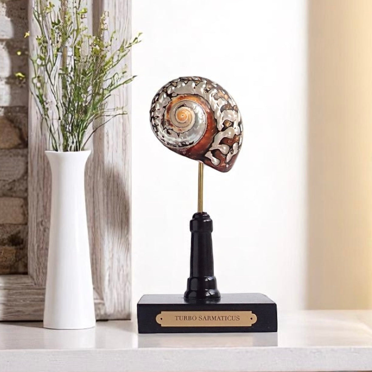 Mounted Shell Sculpture, Sea Shell on Stand, Tropical Shell Display, Elegant Coastal Decor, Beach House Gift, Nautical Marine Home Accent