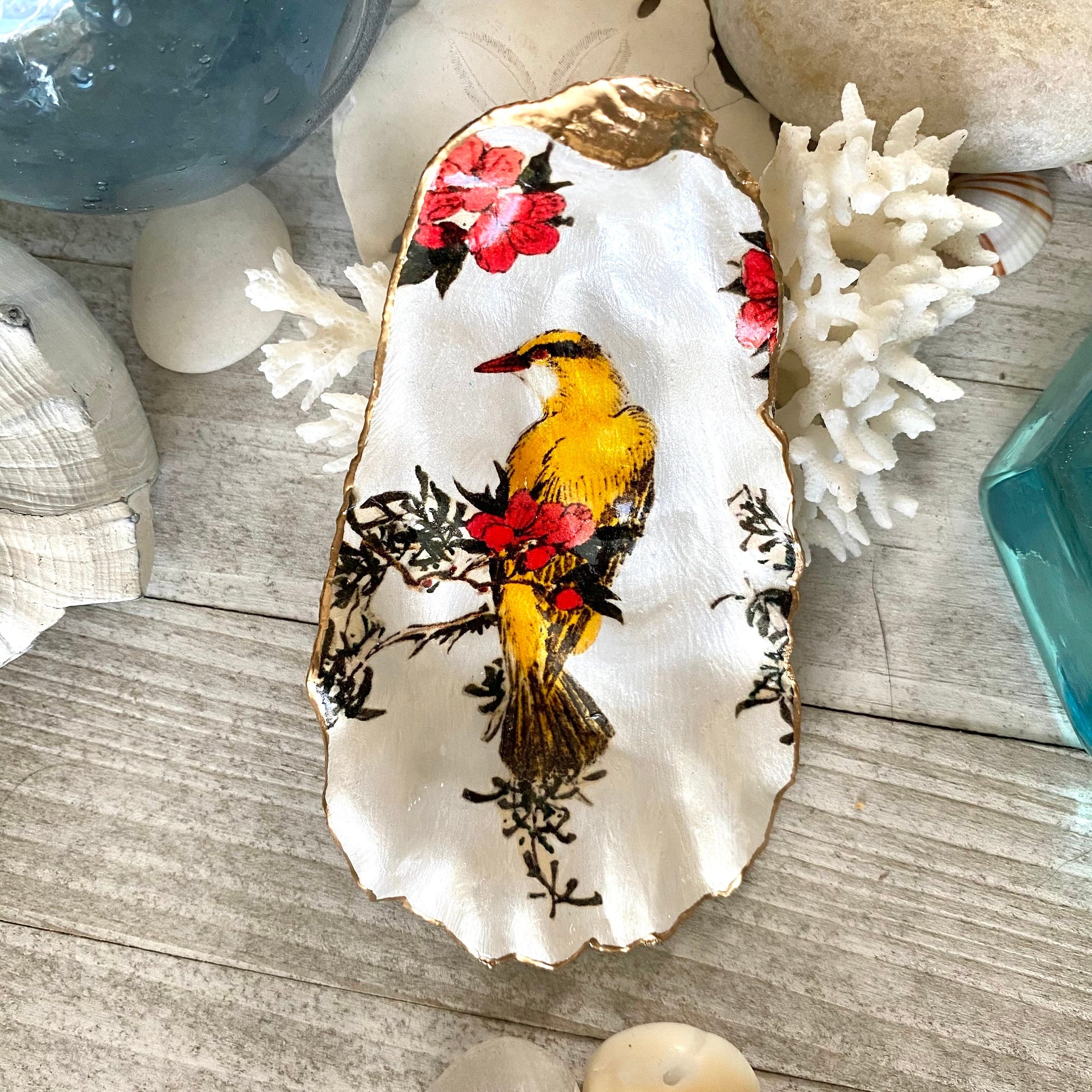 Decoupage Oyster Shell Jewelry Dish – Bird Lover Art