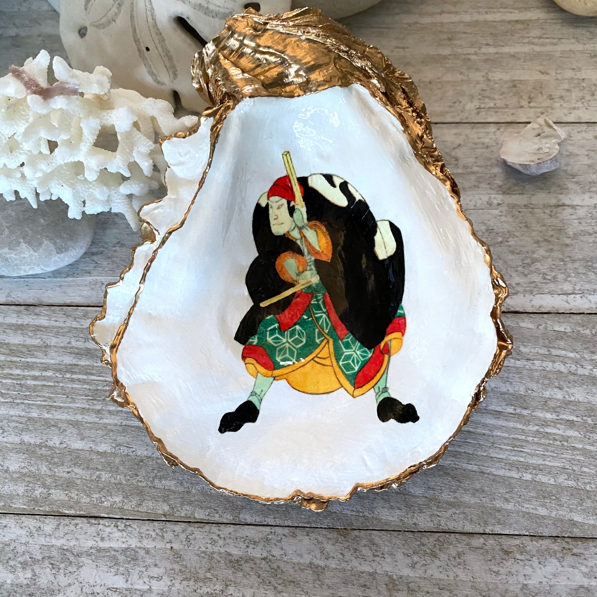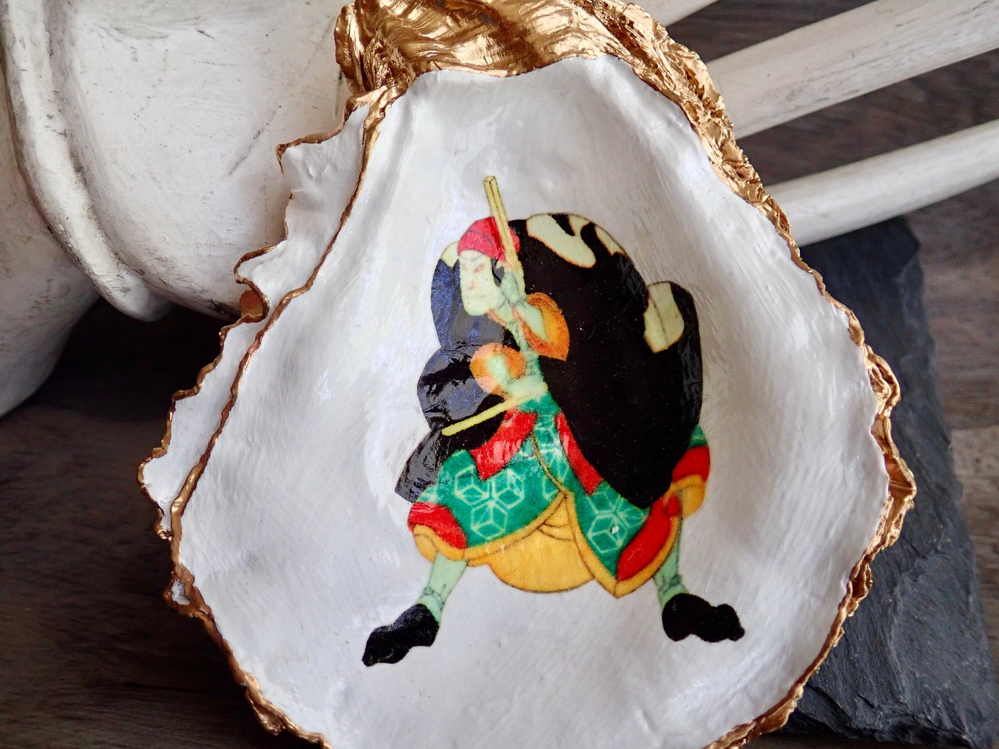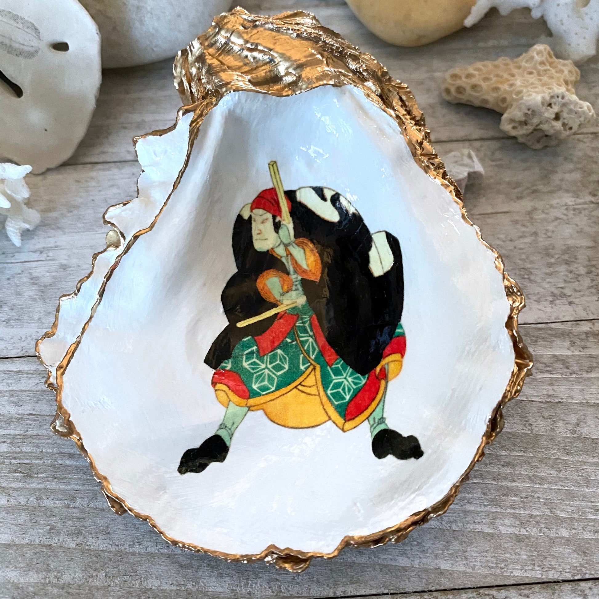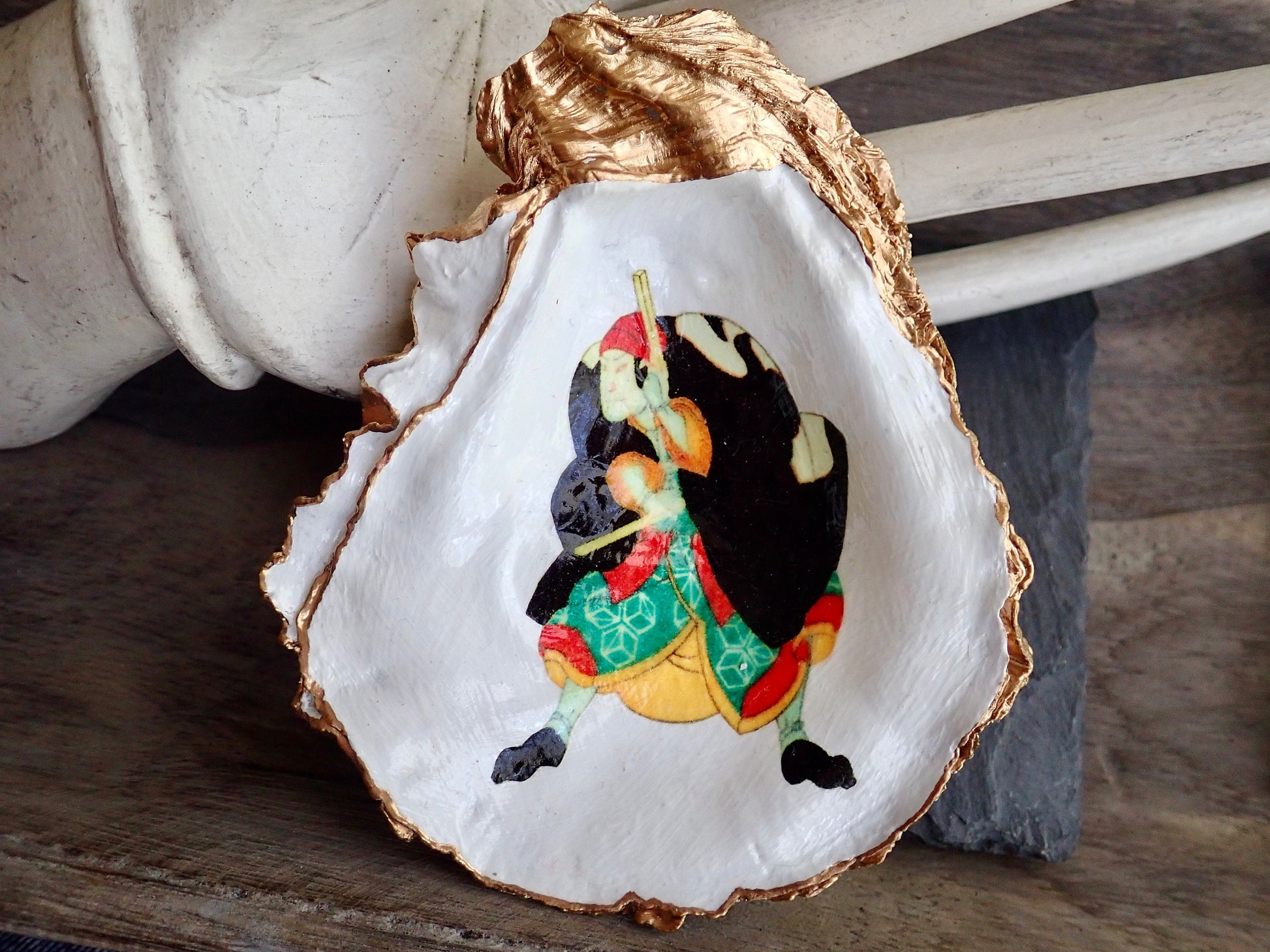 Decoupage Oyster Shell Trinket Dish Samurai Art