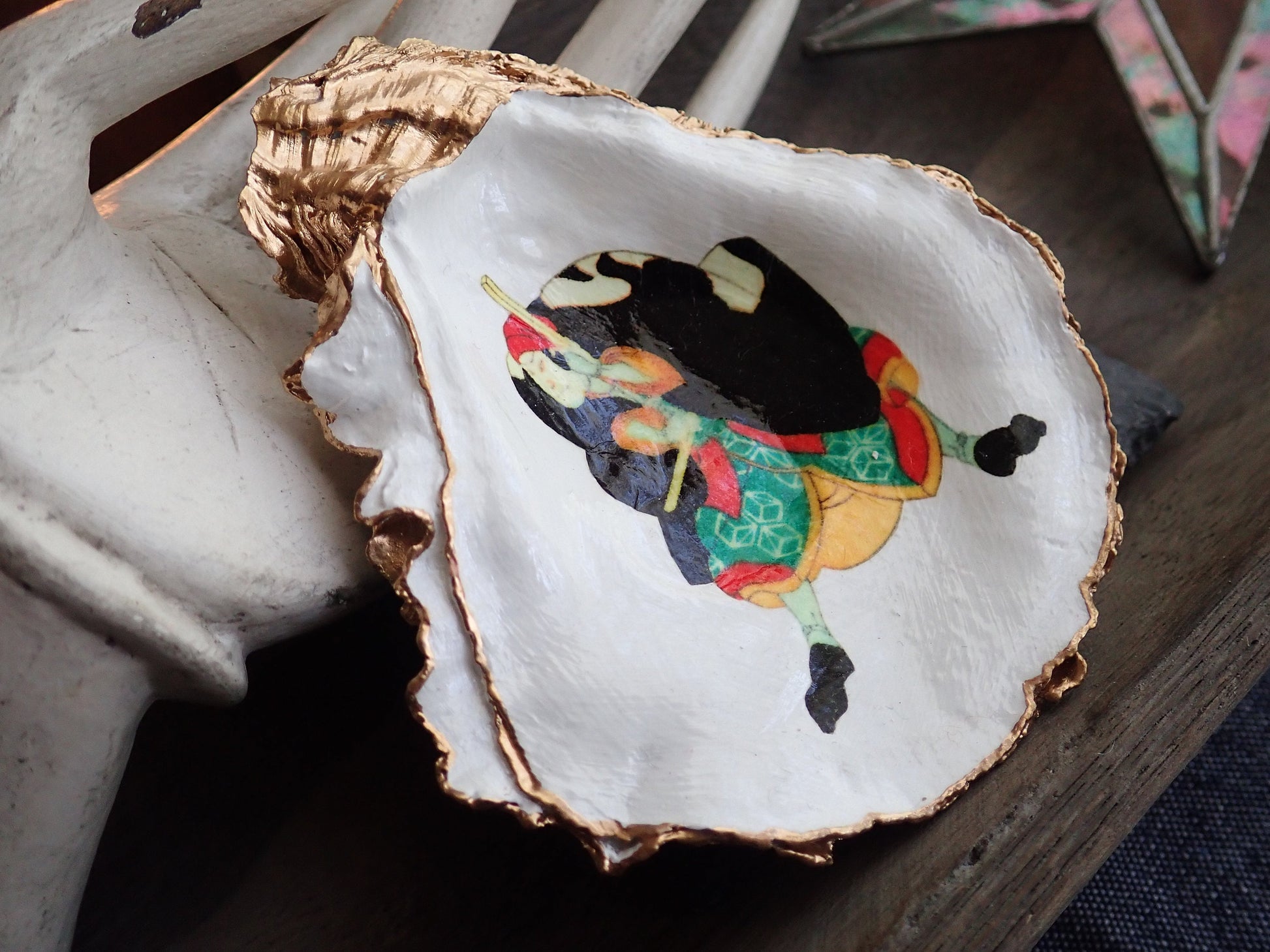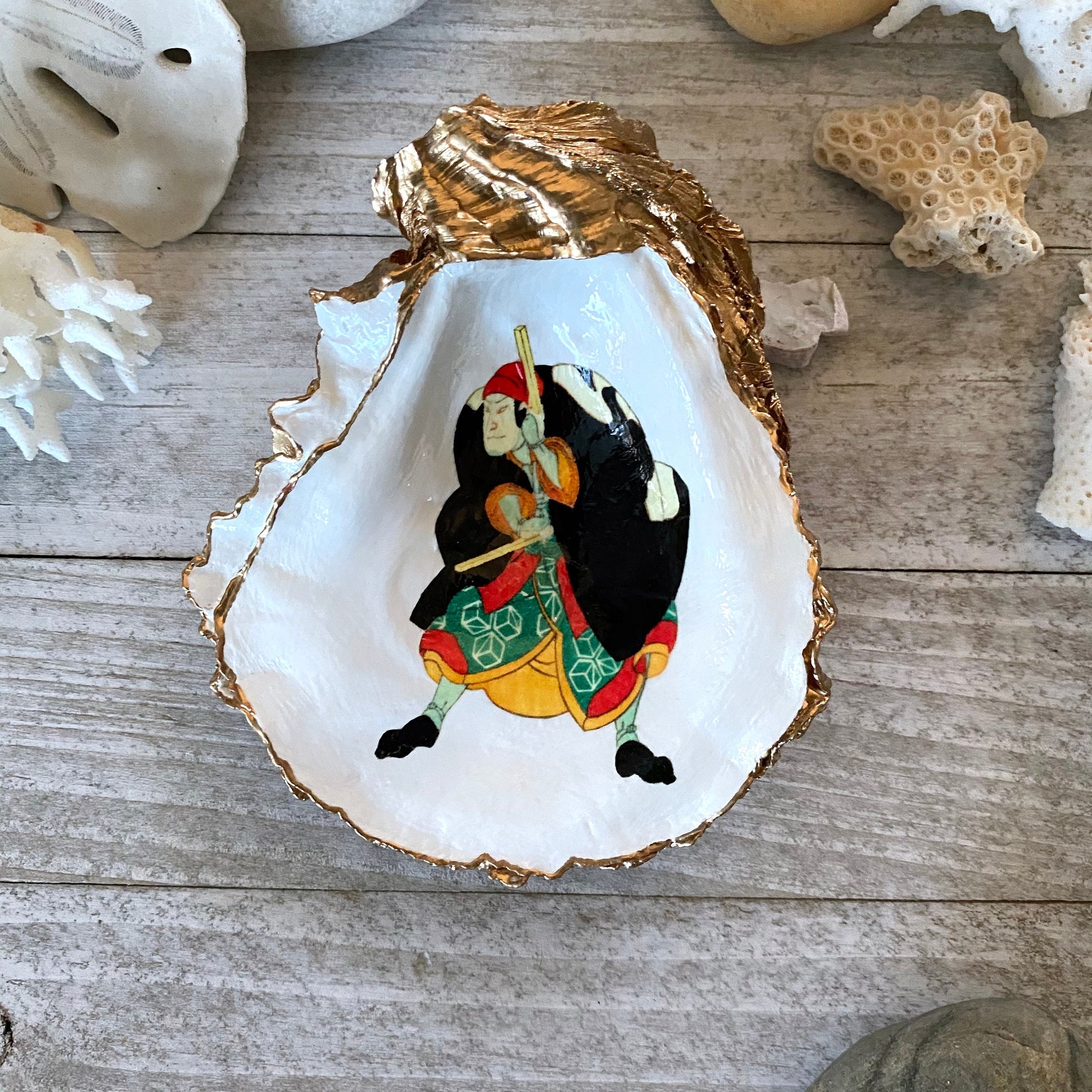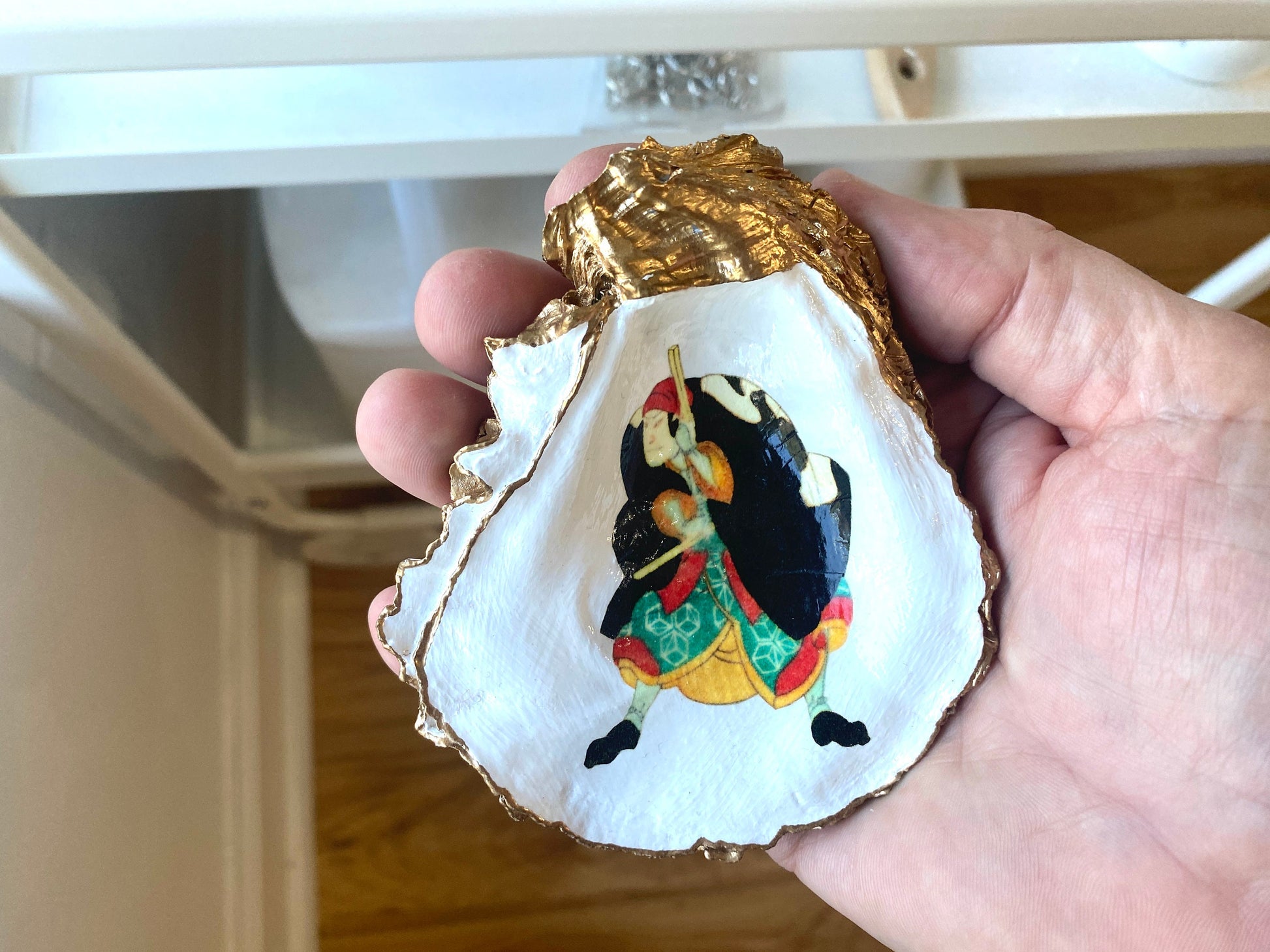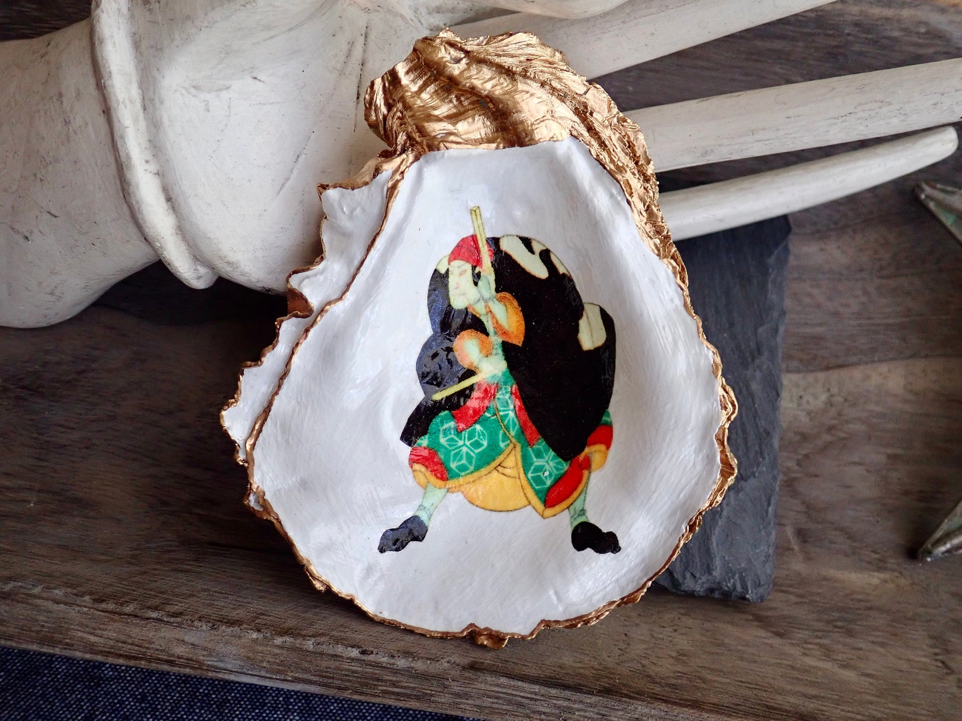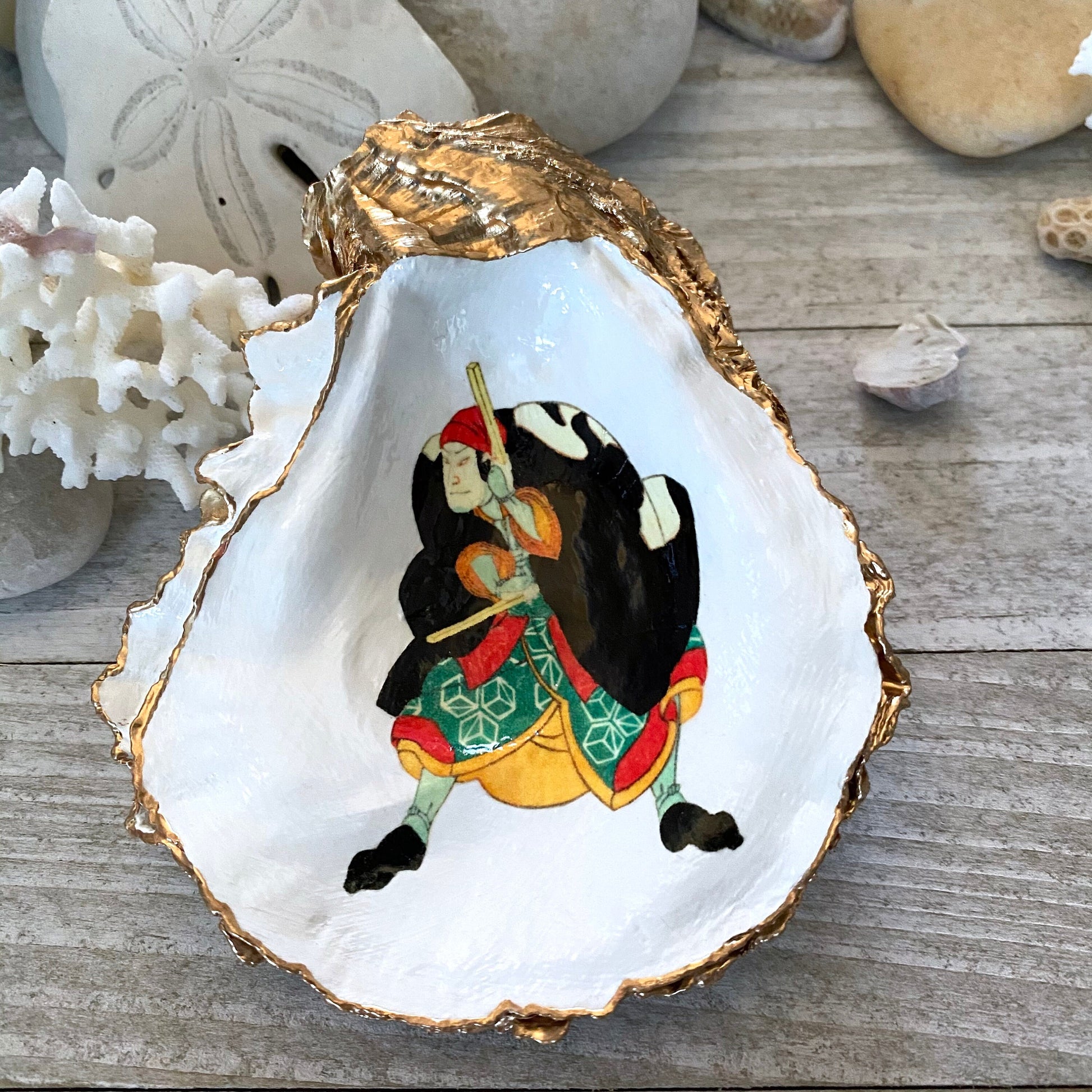Decoupage Oyster Shell Trinket Dish Samurai Art