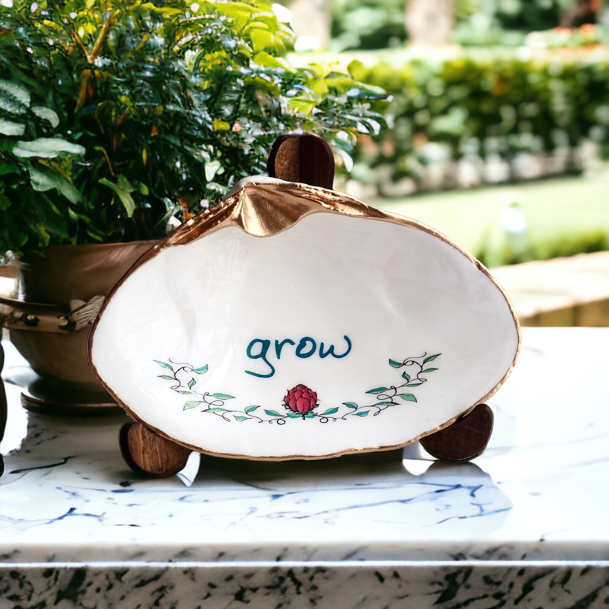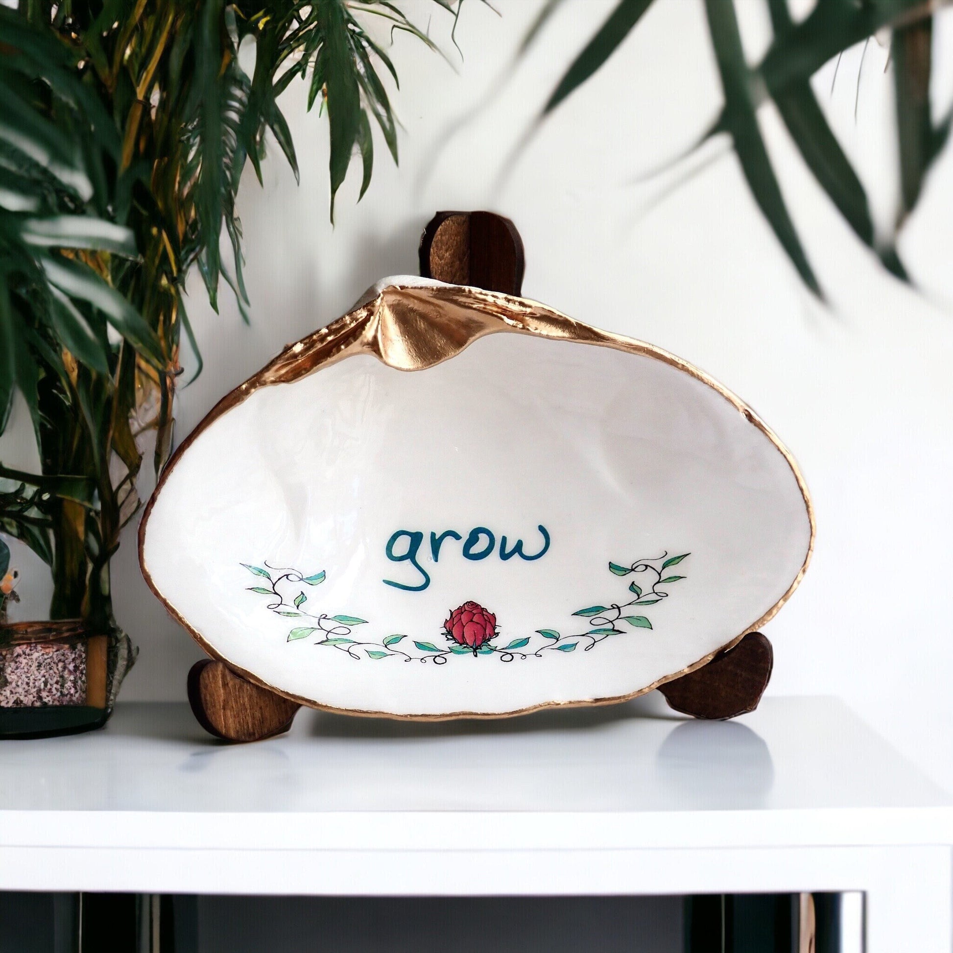 Decoupage Clam Shell Ring Dish – Handcrafted Daily Affirmation Jewelry Holder