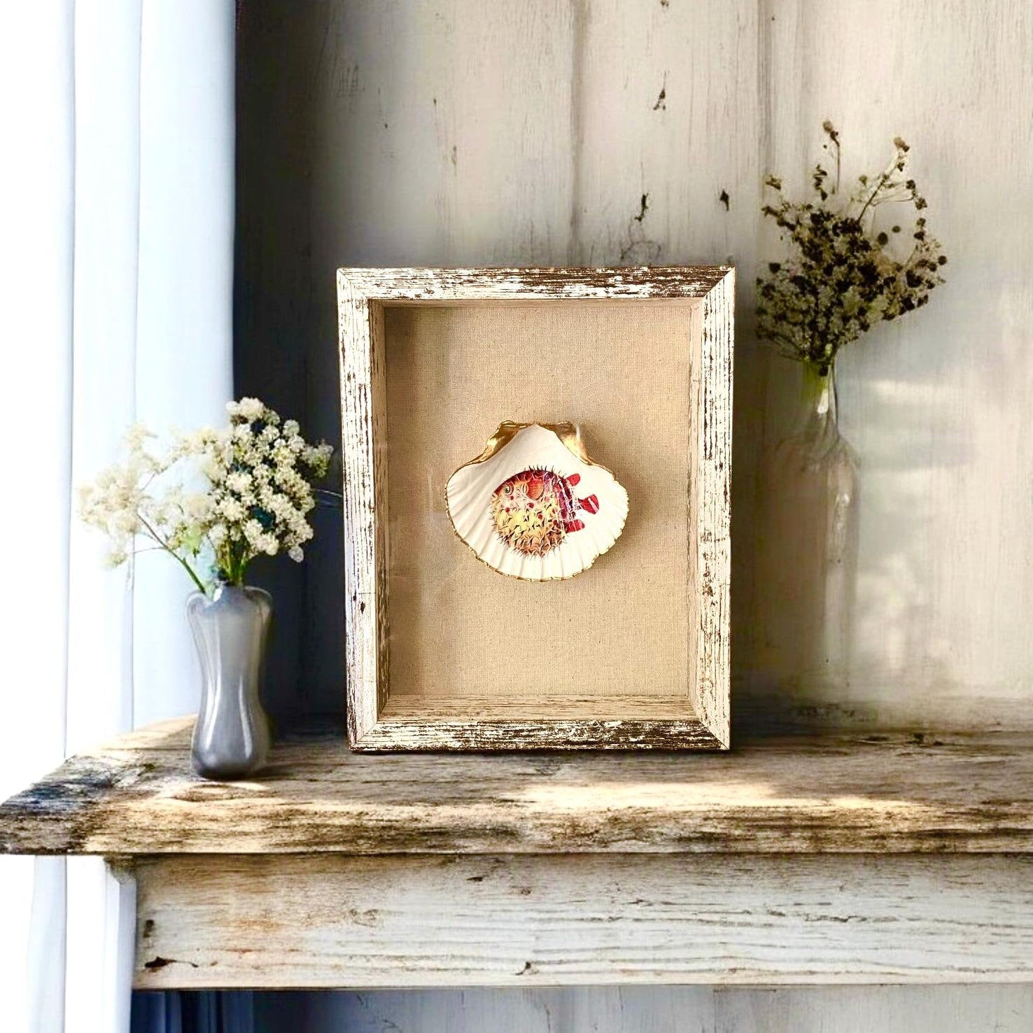 Coastal Wall Art Framed Decoupage Scallop Shell – Beach House Decor