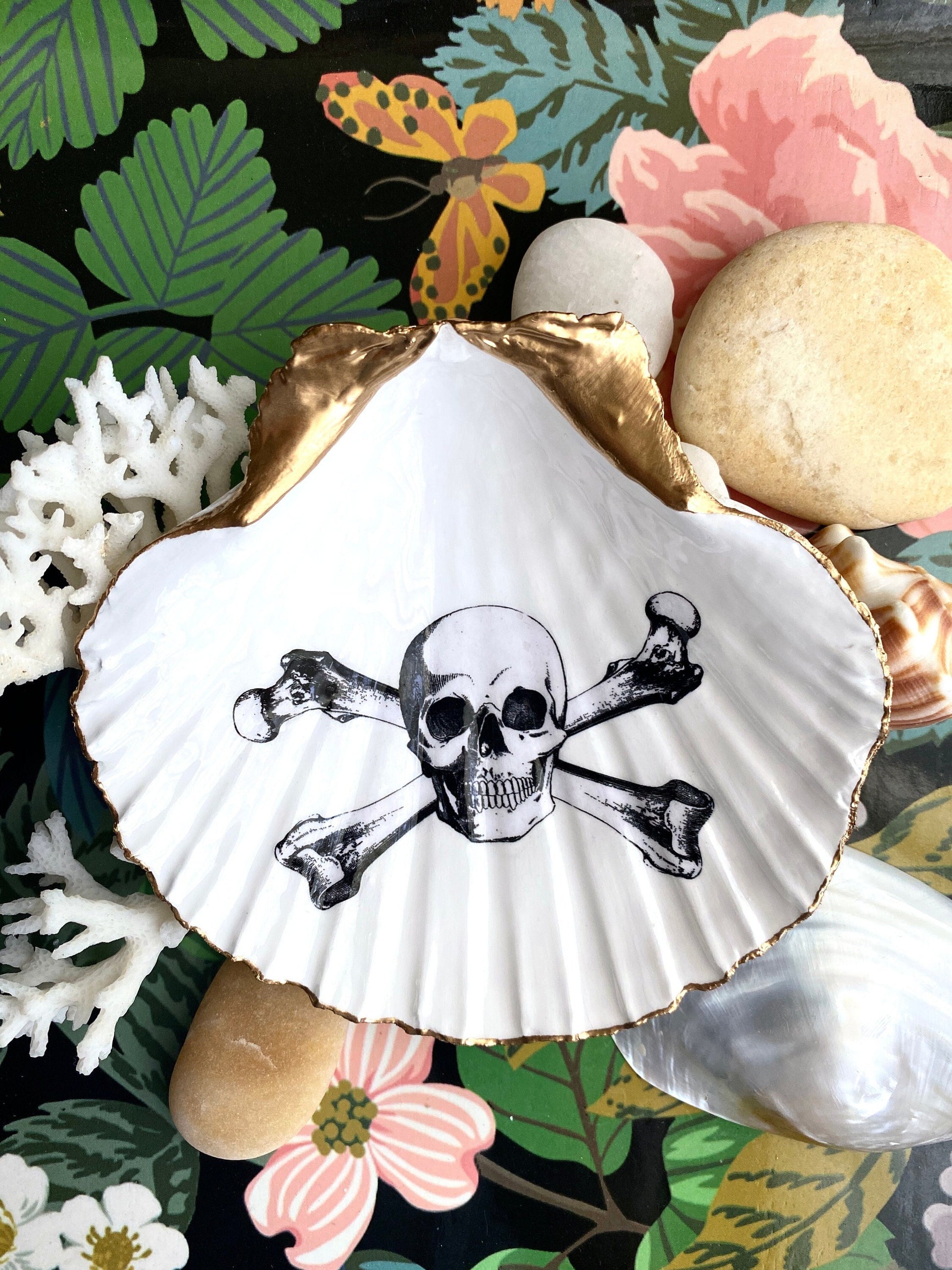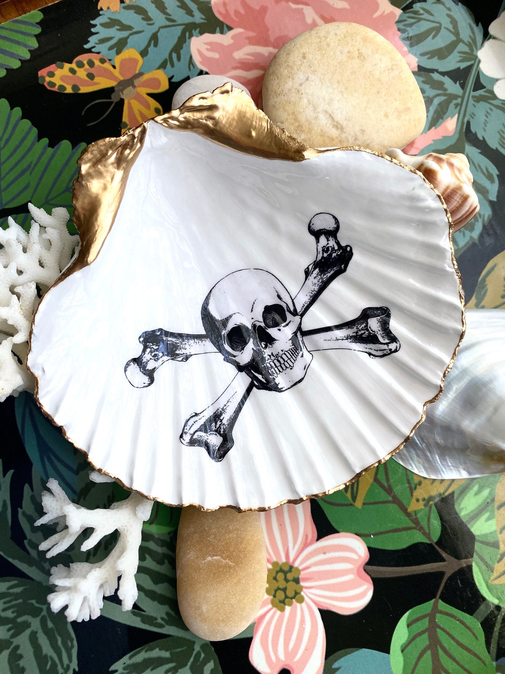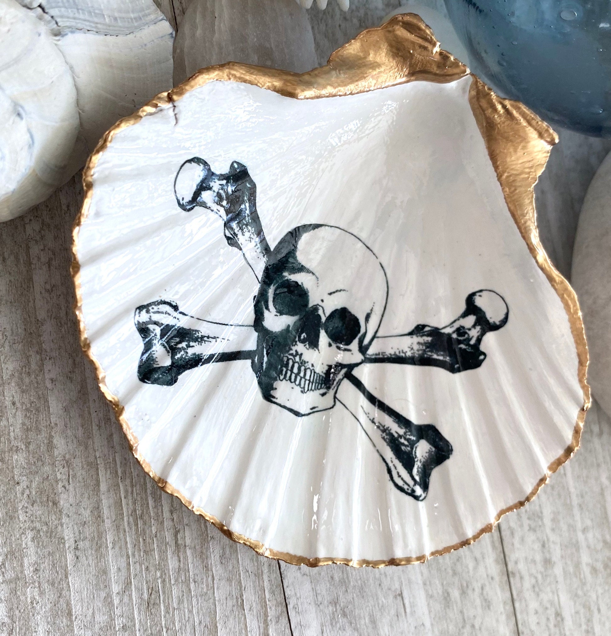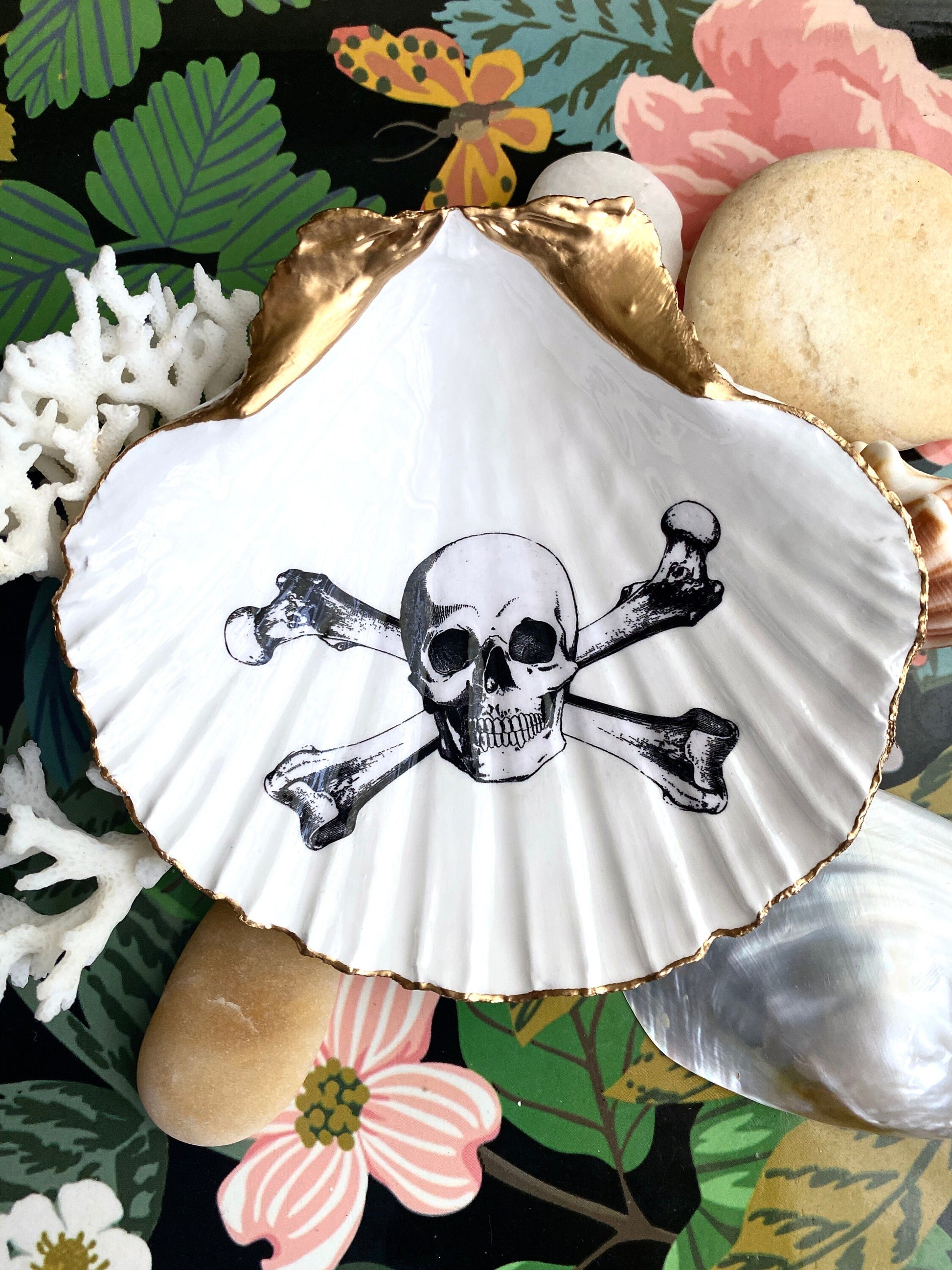 Decoupage Scallop Shell Trinket Dish Skull & Crossbones