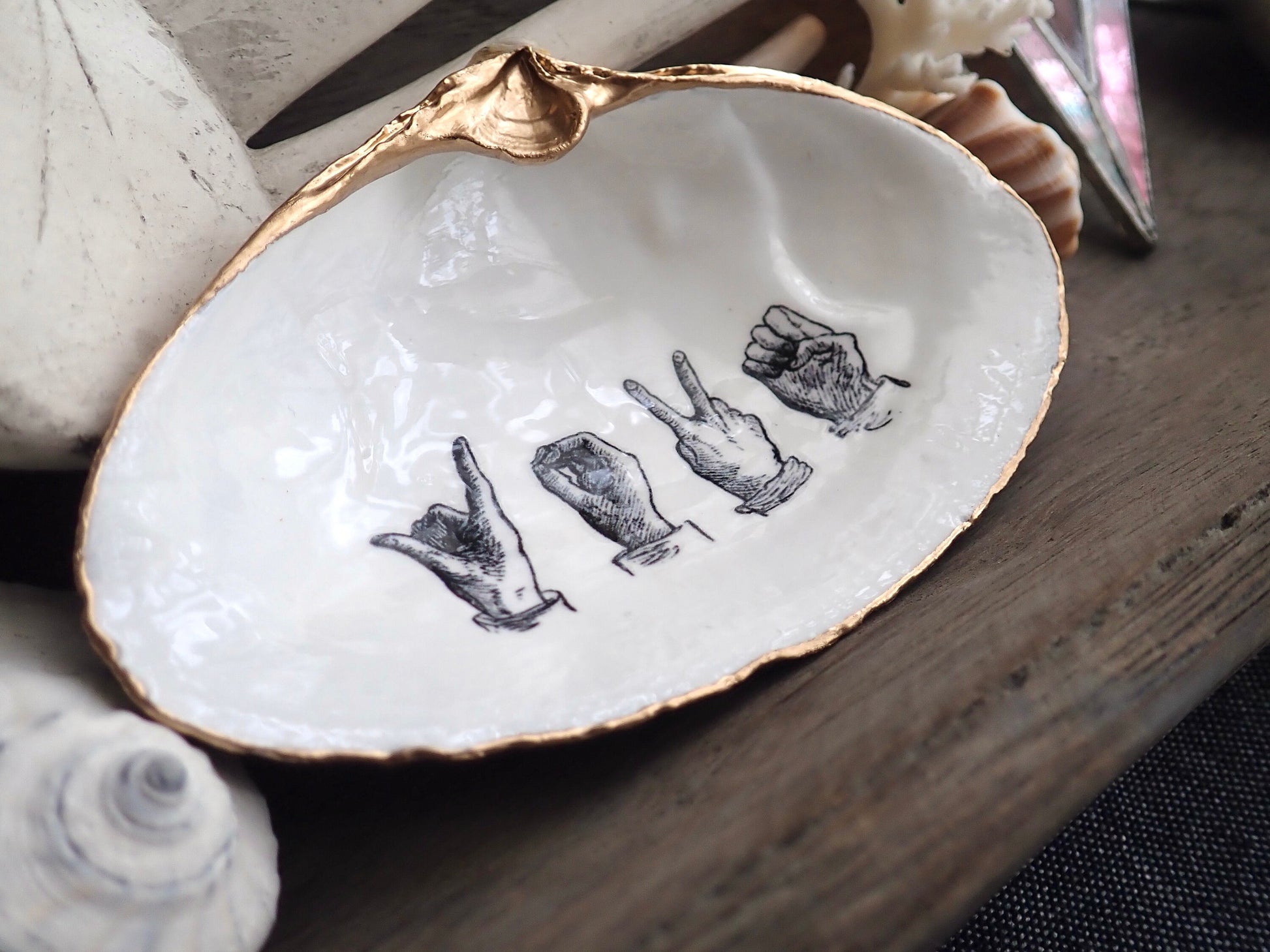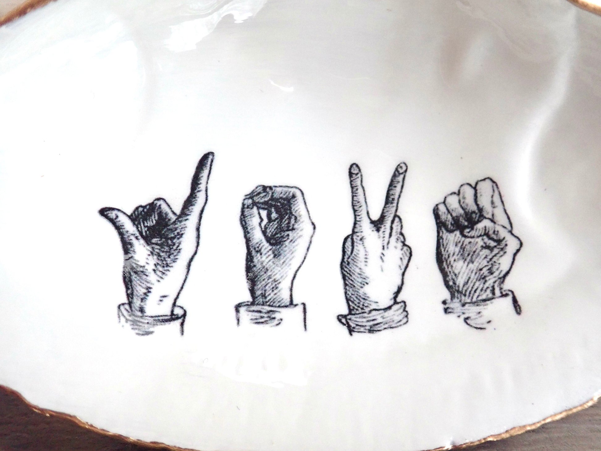 American Sign Language "Love" Decoupage Clam Shell Trinket Dish