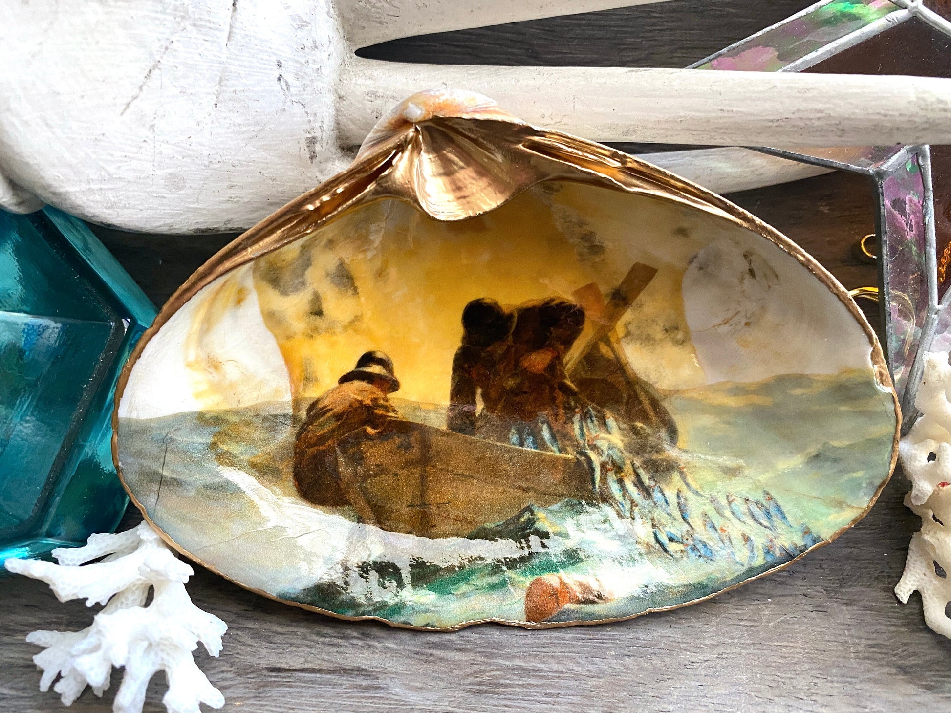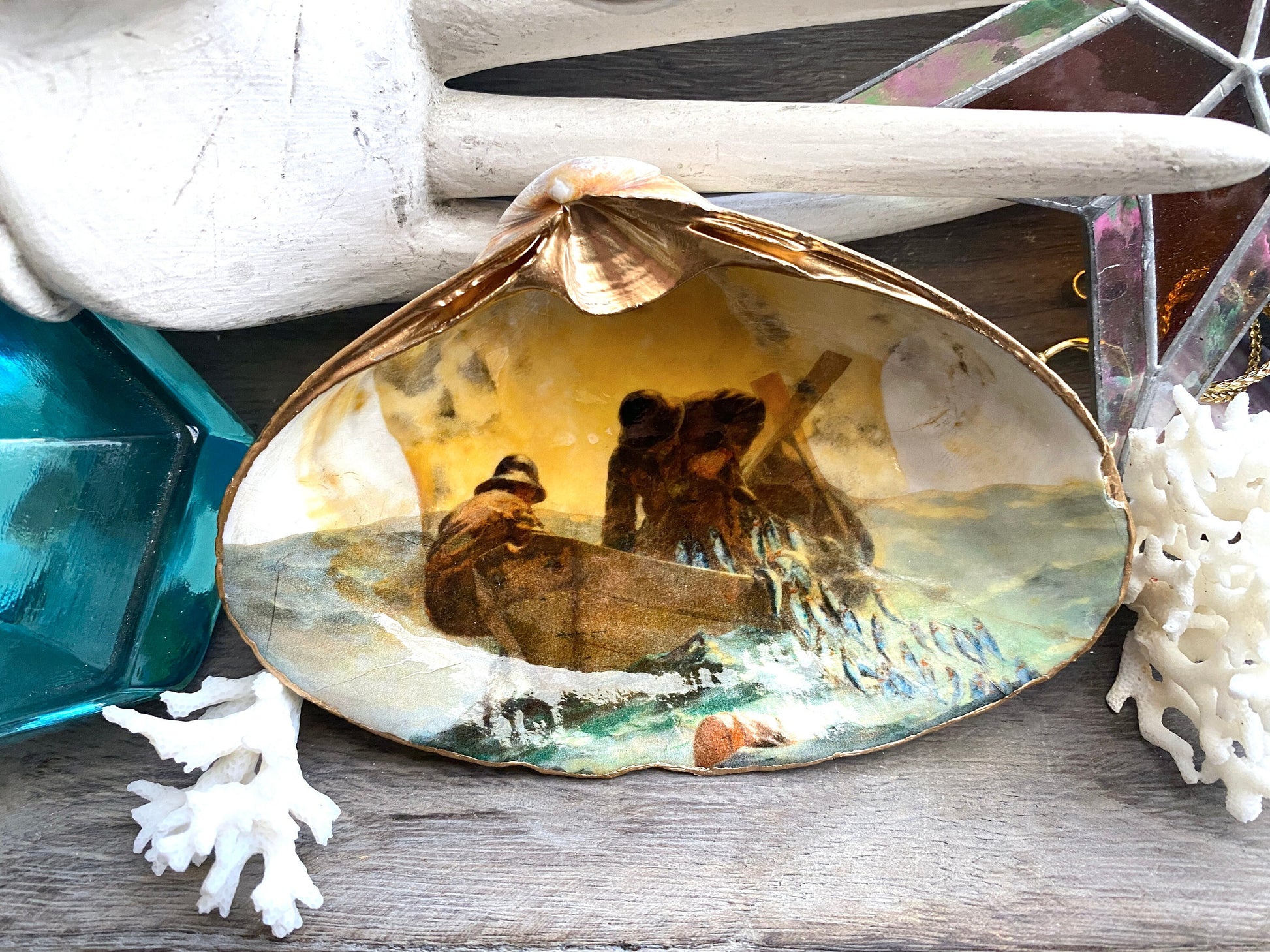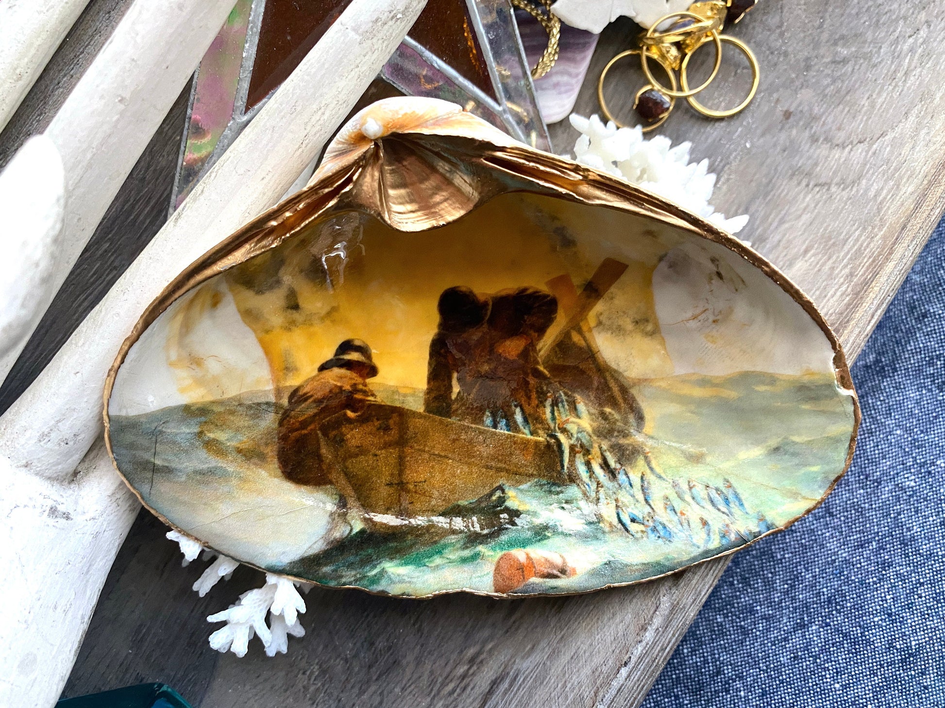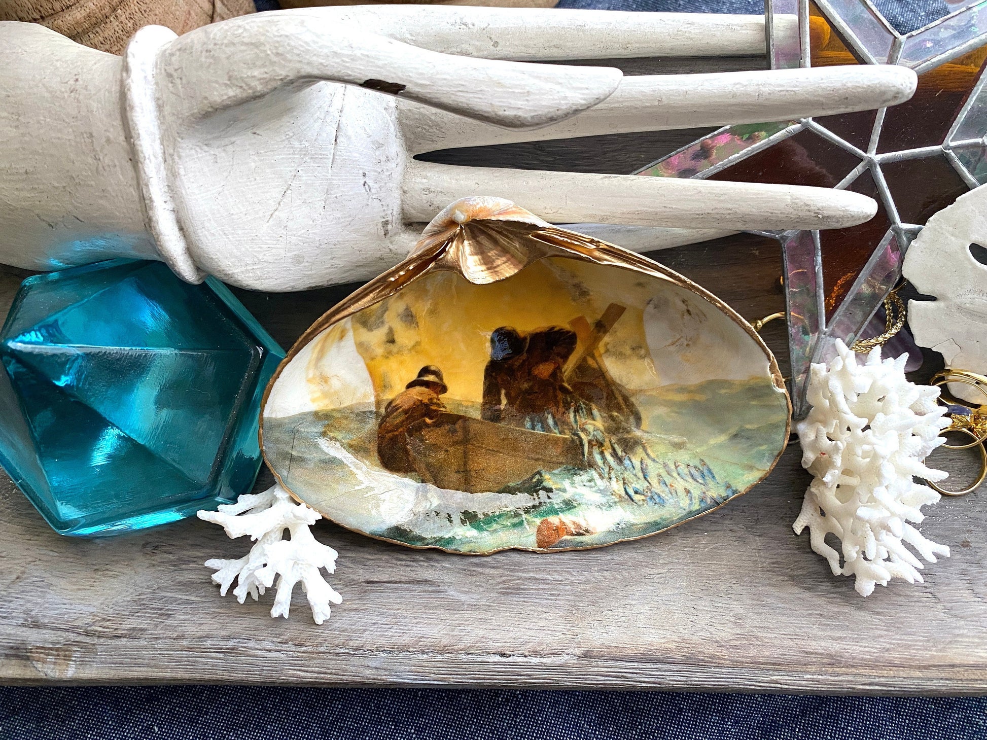 Winslow Homer "The Herring Net" Shell Art – Decoupage Clam Shell Ring Dish