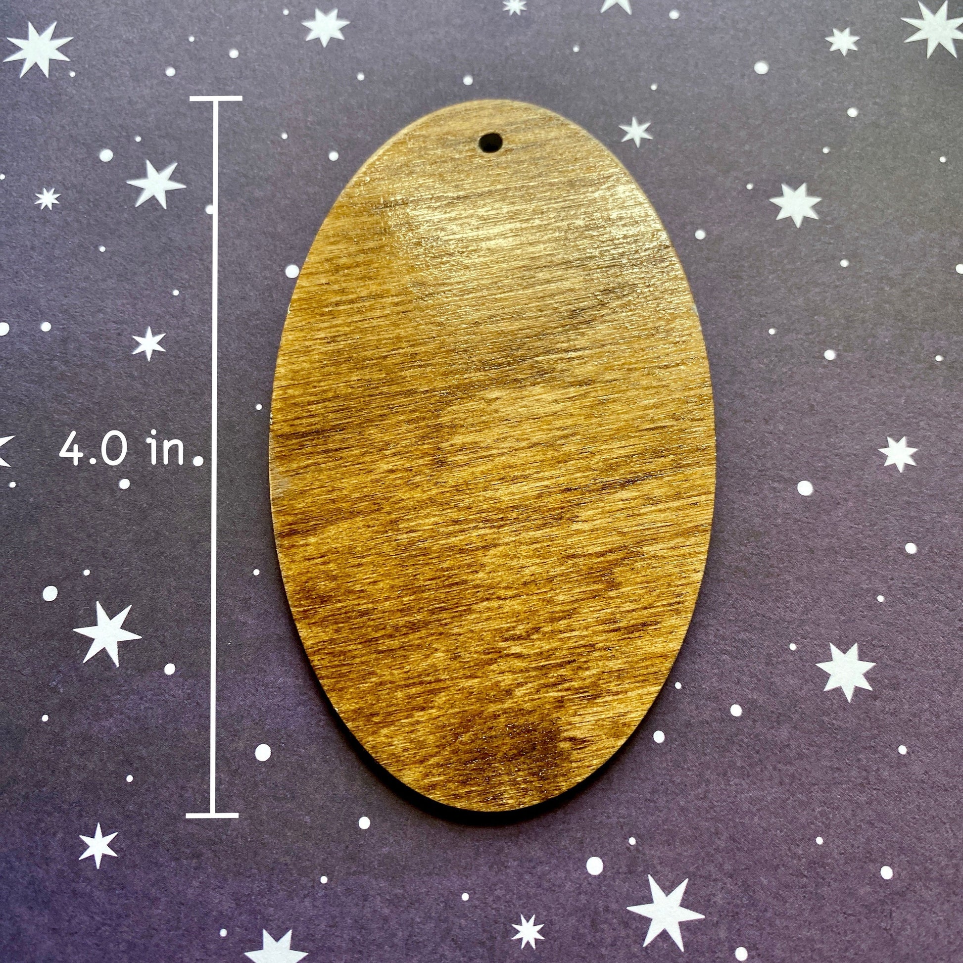 These decoupaged oval birch discs are hand-crafted with a fine level of detail. Images are carefully set on a base of white paint and sealed with multiple layers of lacquer to give a refined porcelain feel and look to them. A delicate edging of liquid gold leaf gives the finishing touch. Ornament backs are stained in a rich brown and sealed in high gloss.