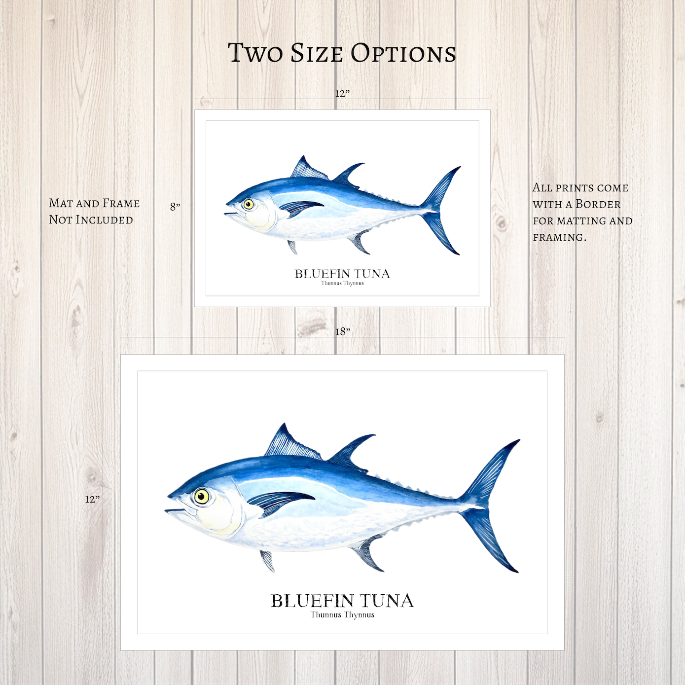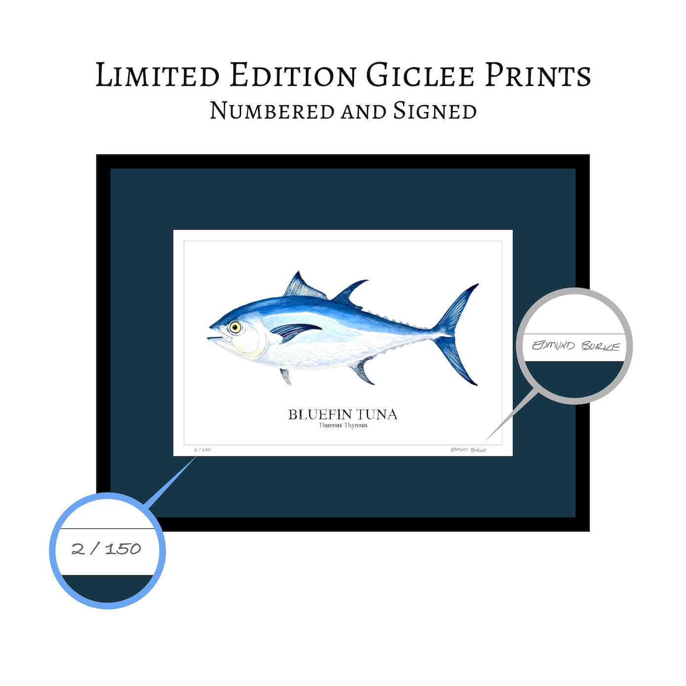 Limited edition giclee wildlife art print of a Blue Fin Tuna from an original watercolor painted by me.